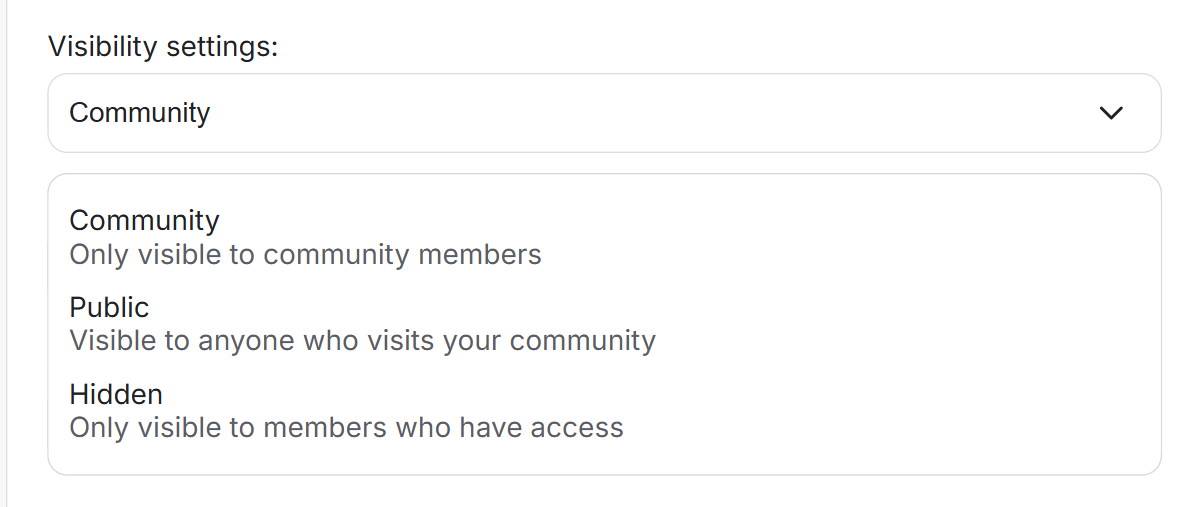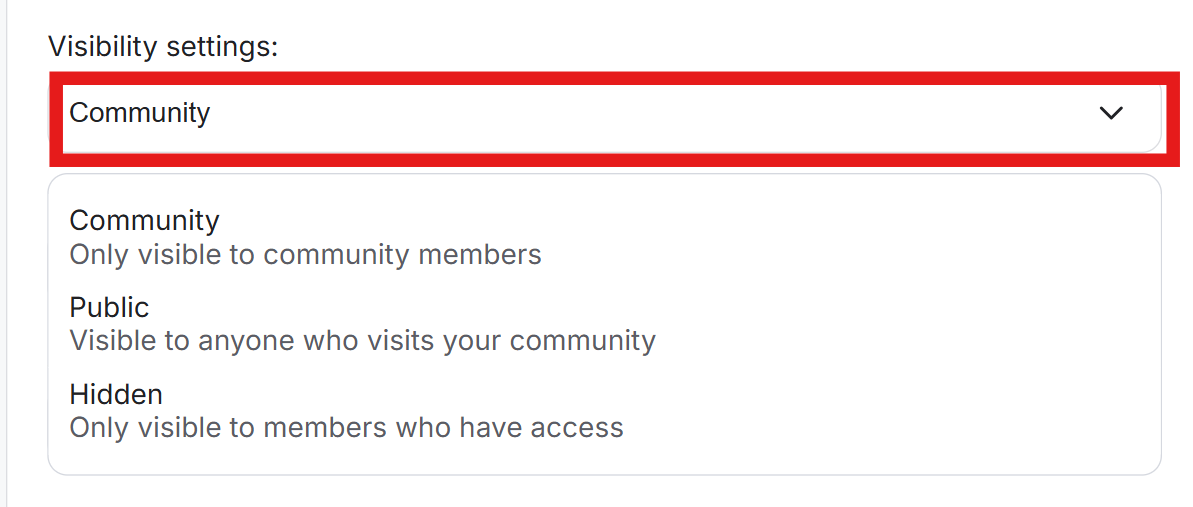 If the visibility setting is set to Public and the access level is set to ‘One-Time Fee’, this combination allows non-community members to access your resources without joining the community.