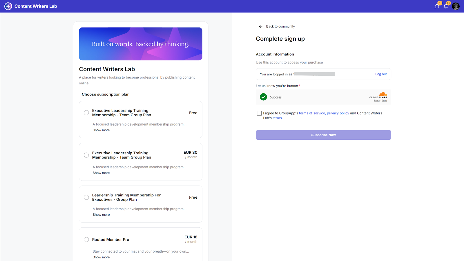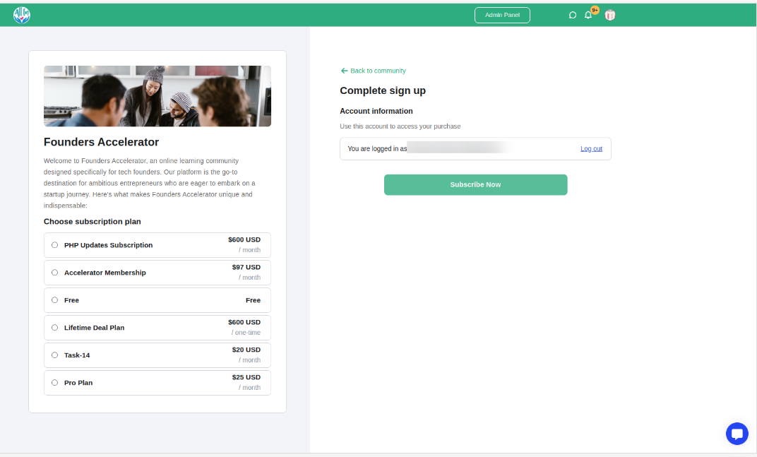 Members whose subscriptions were canceled and who stopped paying will only see the subscription plans page. They will not be able to access the community unless they resubscribe to a plan.