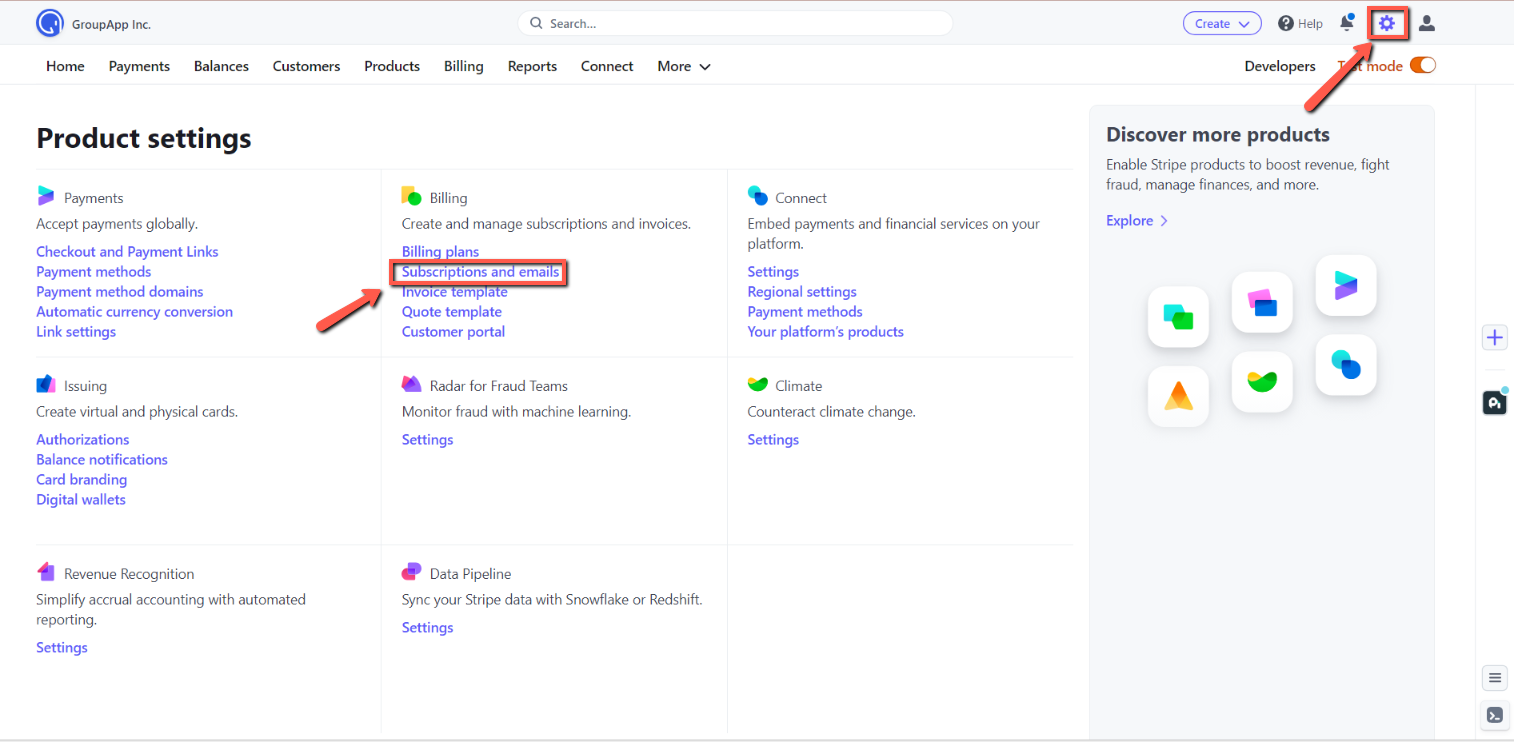 Step 1: Click the Settings icon on the top right menu and click Subscriptions and Emails under the Billing section.