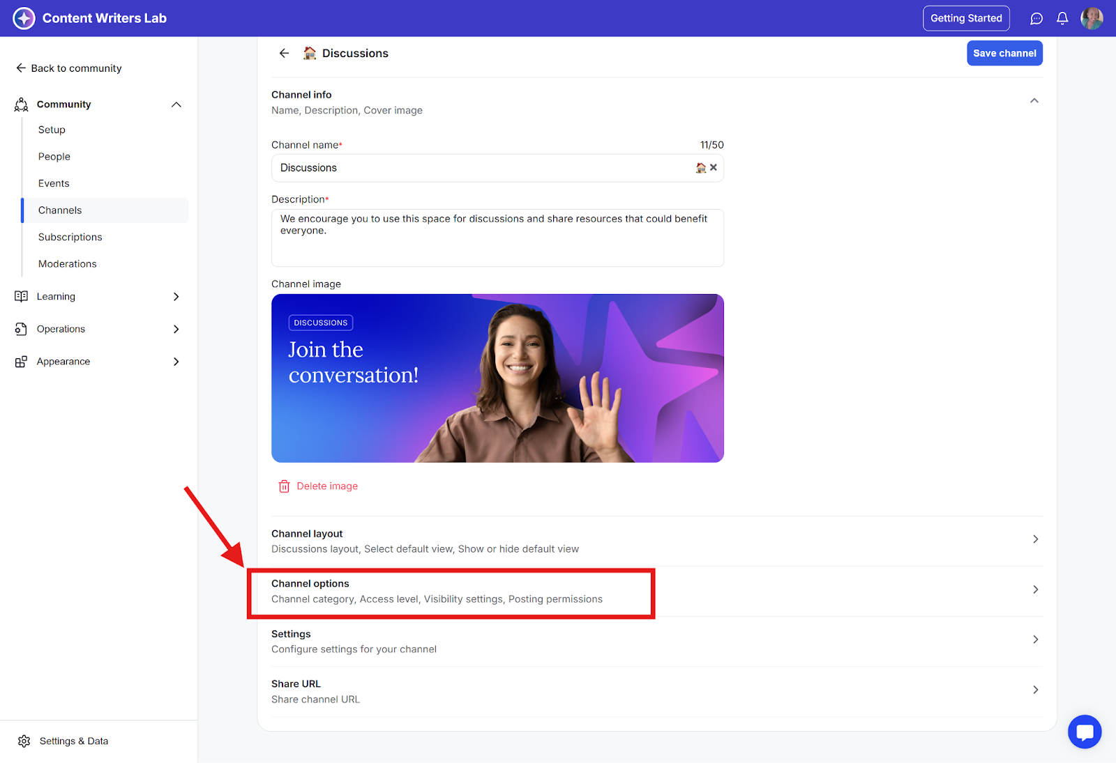 Step 4: In the Edit Channel page, scroll down to the Channel Options section.