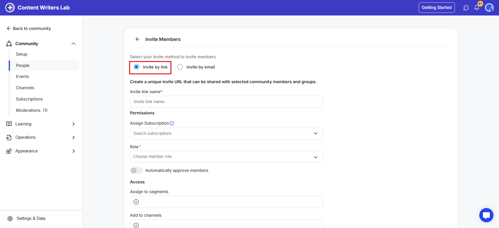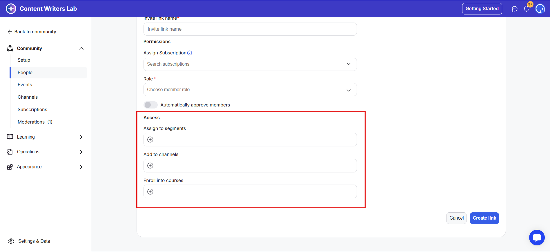 Assign to segments: After completing the sign-up process, the invited member will be added to the community segments that you select.