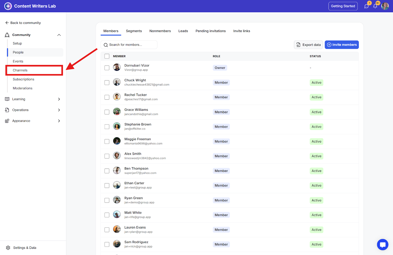 Step 2: Click Channels on the side menu.