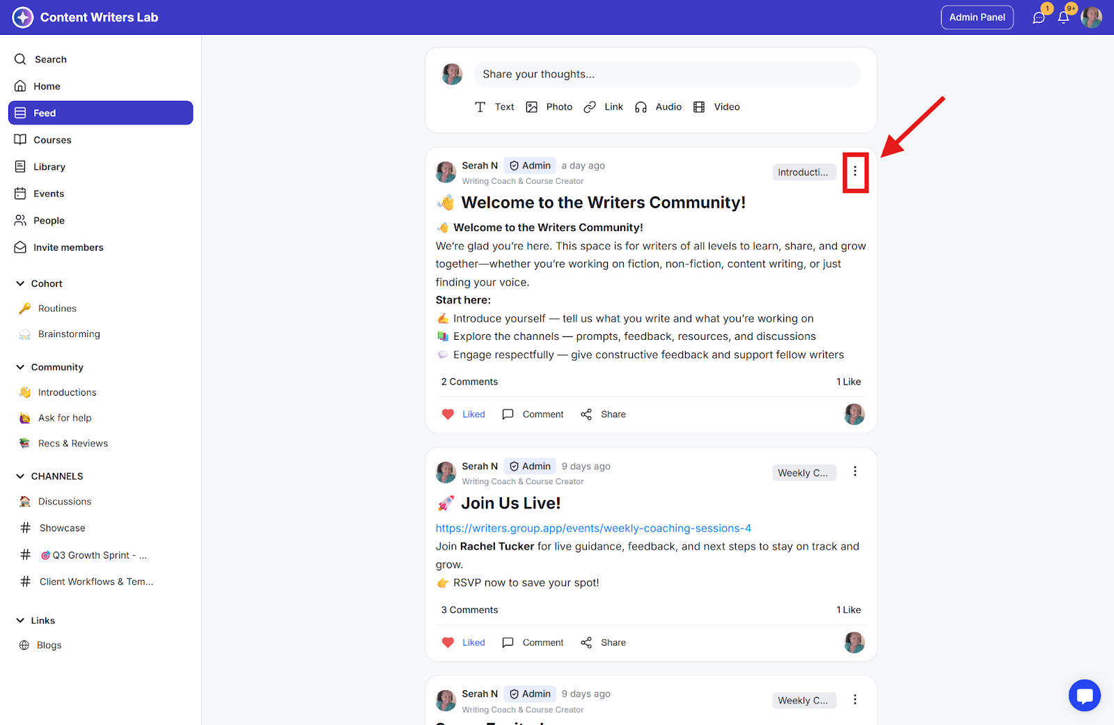 Step 1: Go to the post you want to disable comments on and click the three-dot icon on the right.