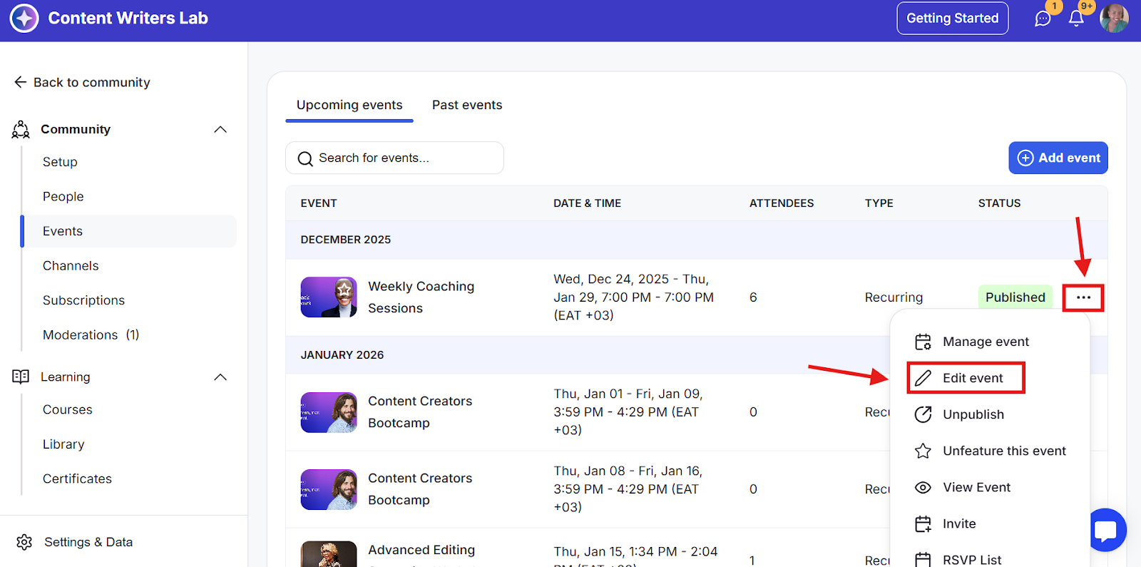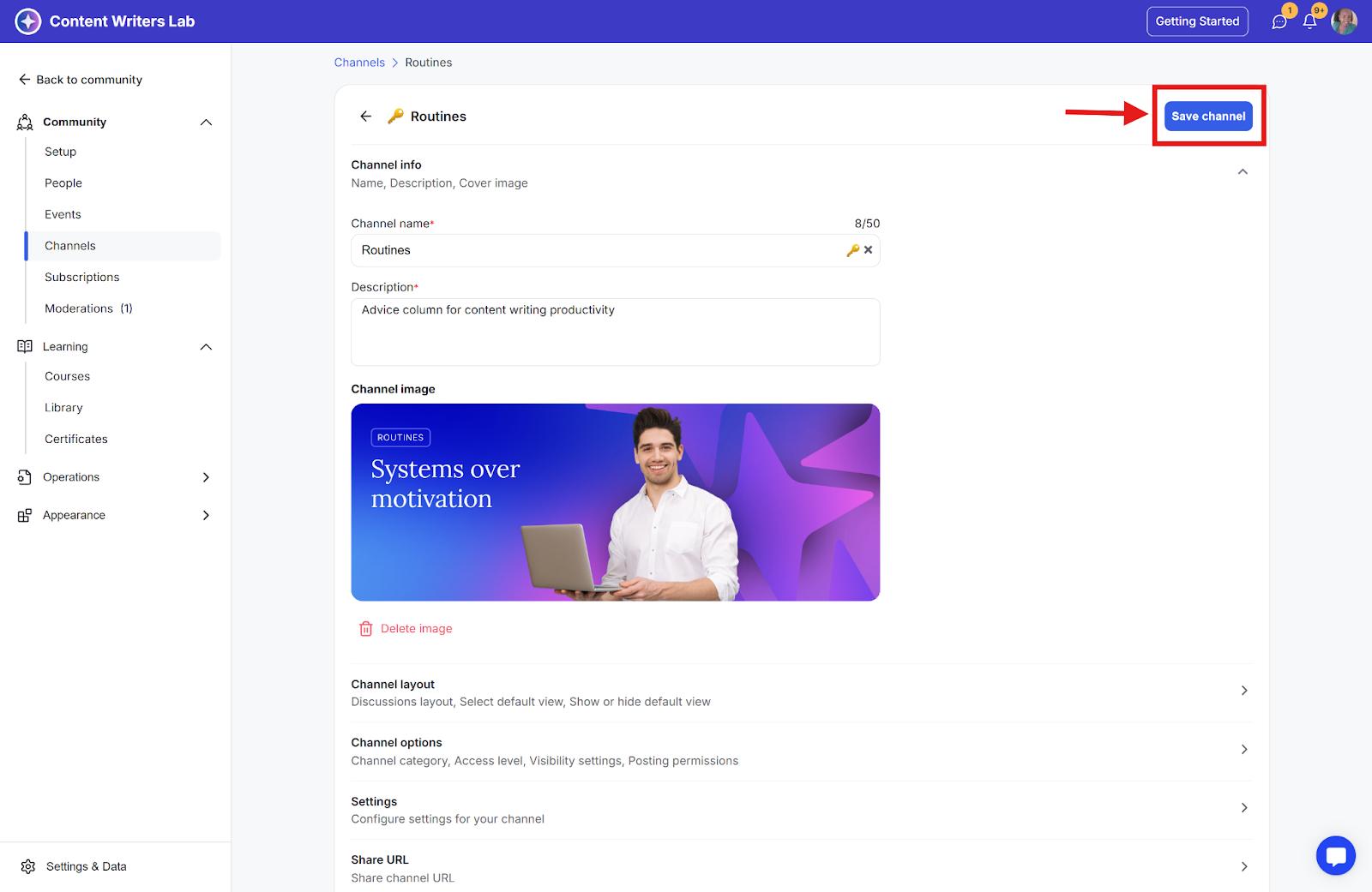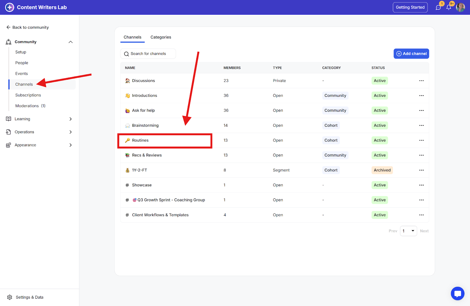 Step 1: Go to the Admin Panel, click Channels, and locate the channel you want to disable reactions and comments.