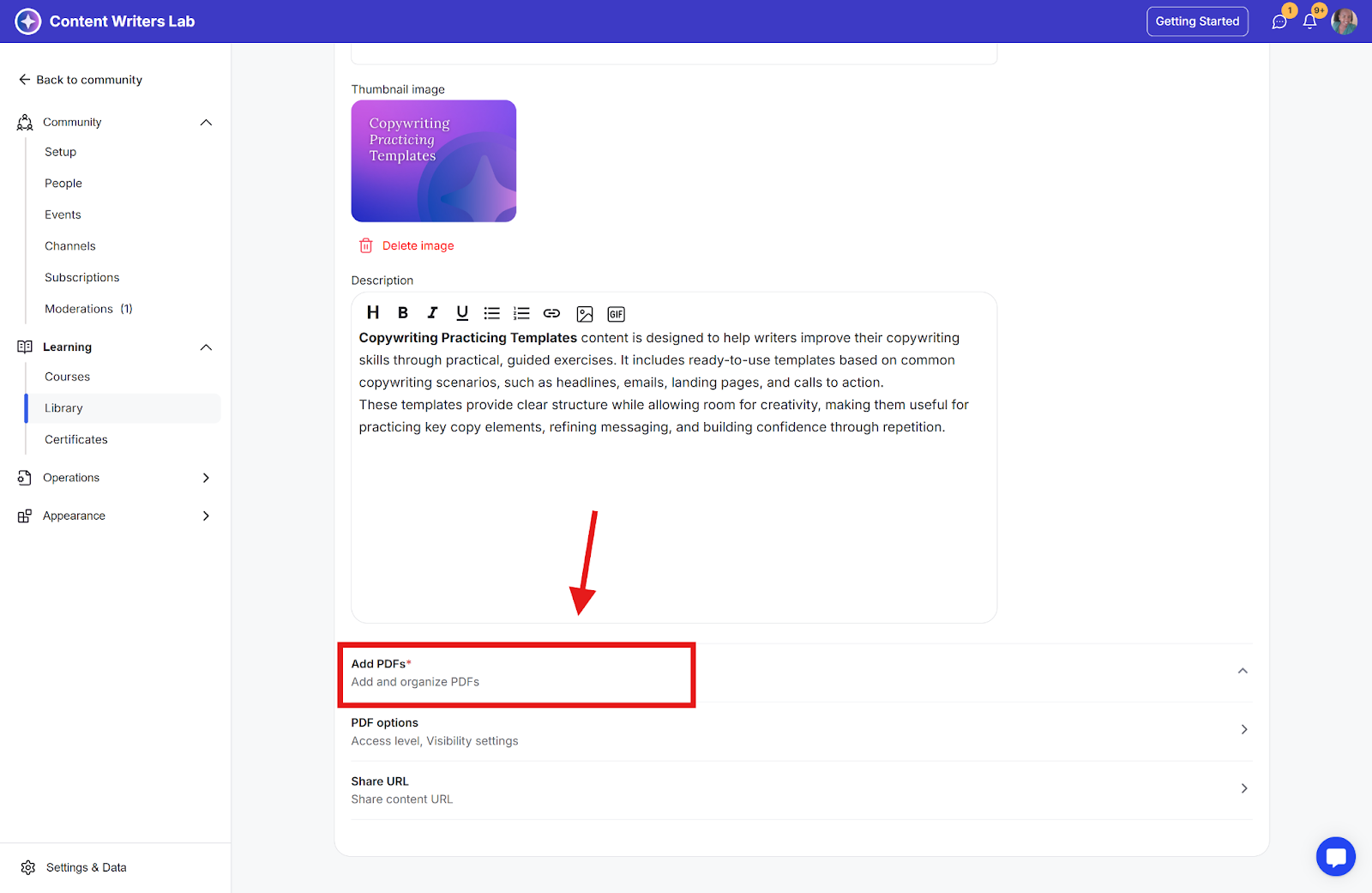 Step 2: Scroll down to the Add PDFs/Embeds/Audio/Articles/Videos section.