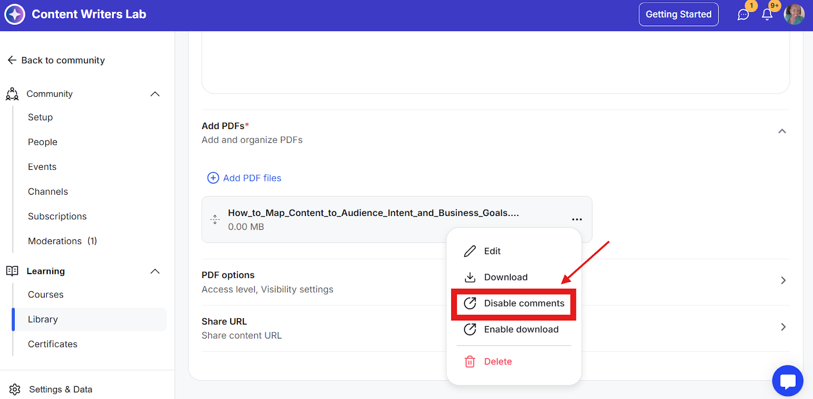 Step 3: Click the 3-dot menu, and click the 'Disable Comments' option.