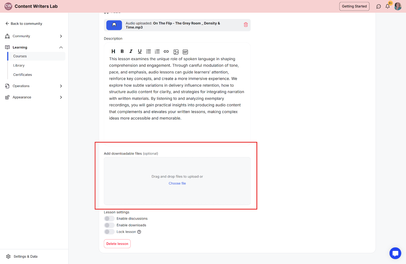 How to Add Downloadable Files to Course Lessons