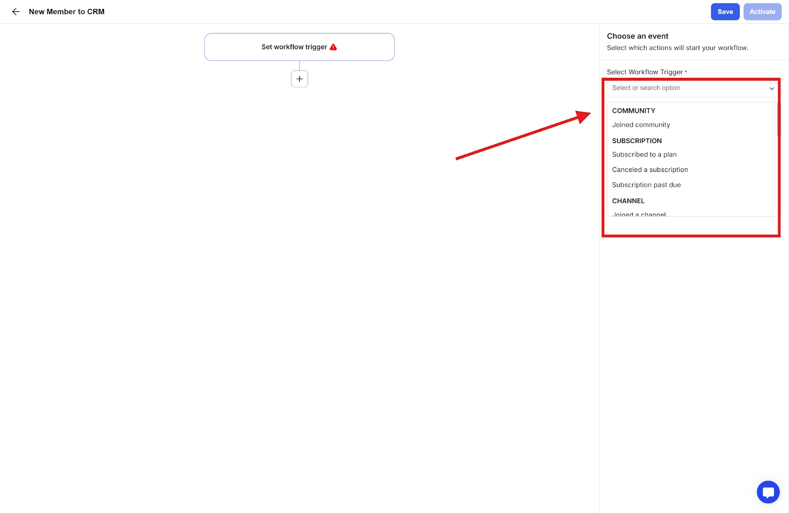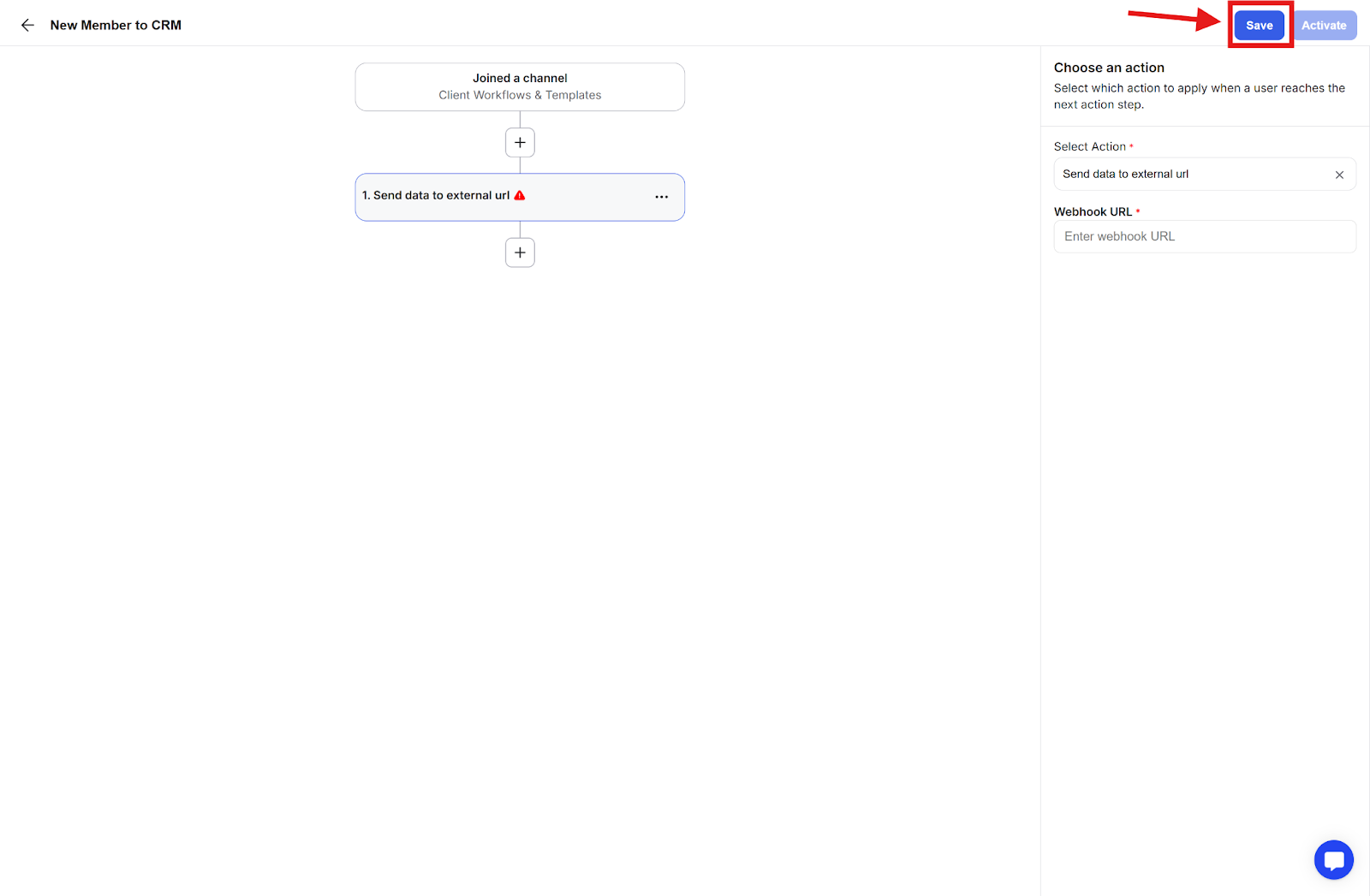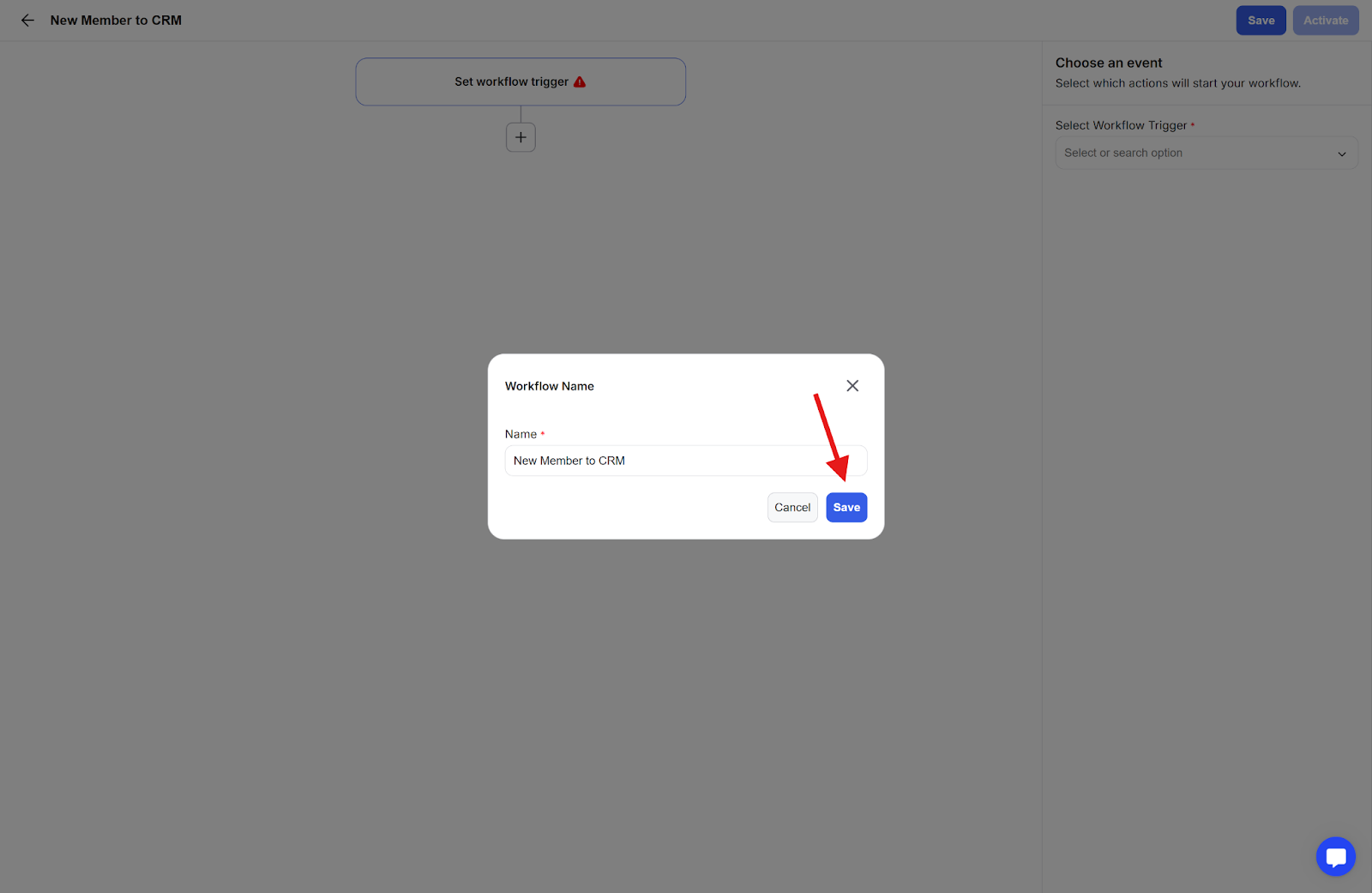 Step 3: Assign a descriptive name to your workflow (e.g., "New Member to CRM") and click Save.