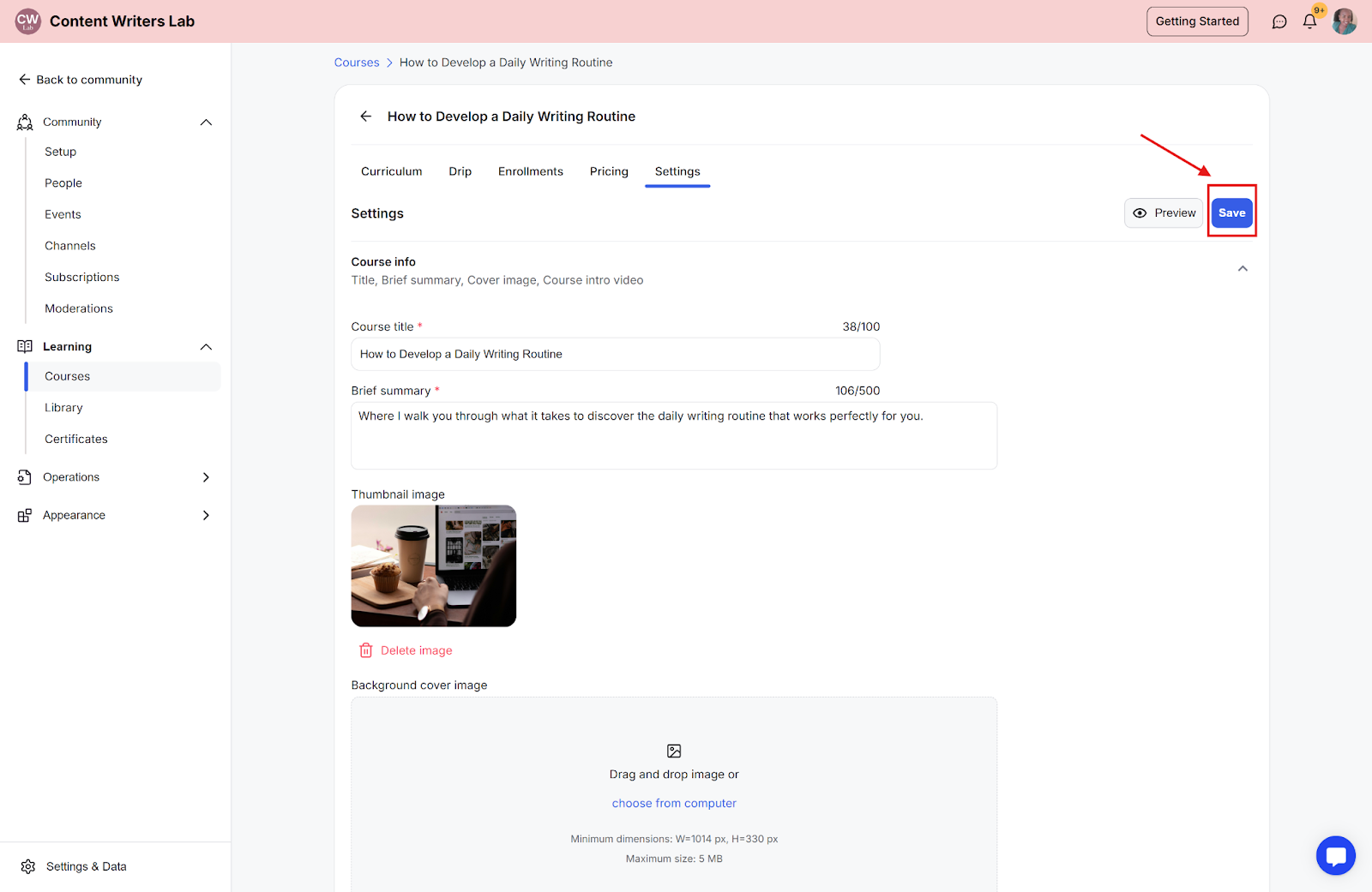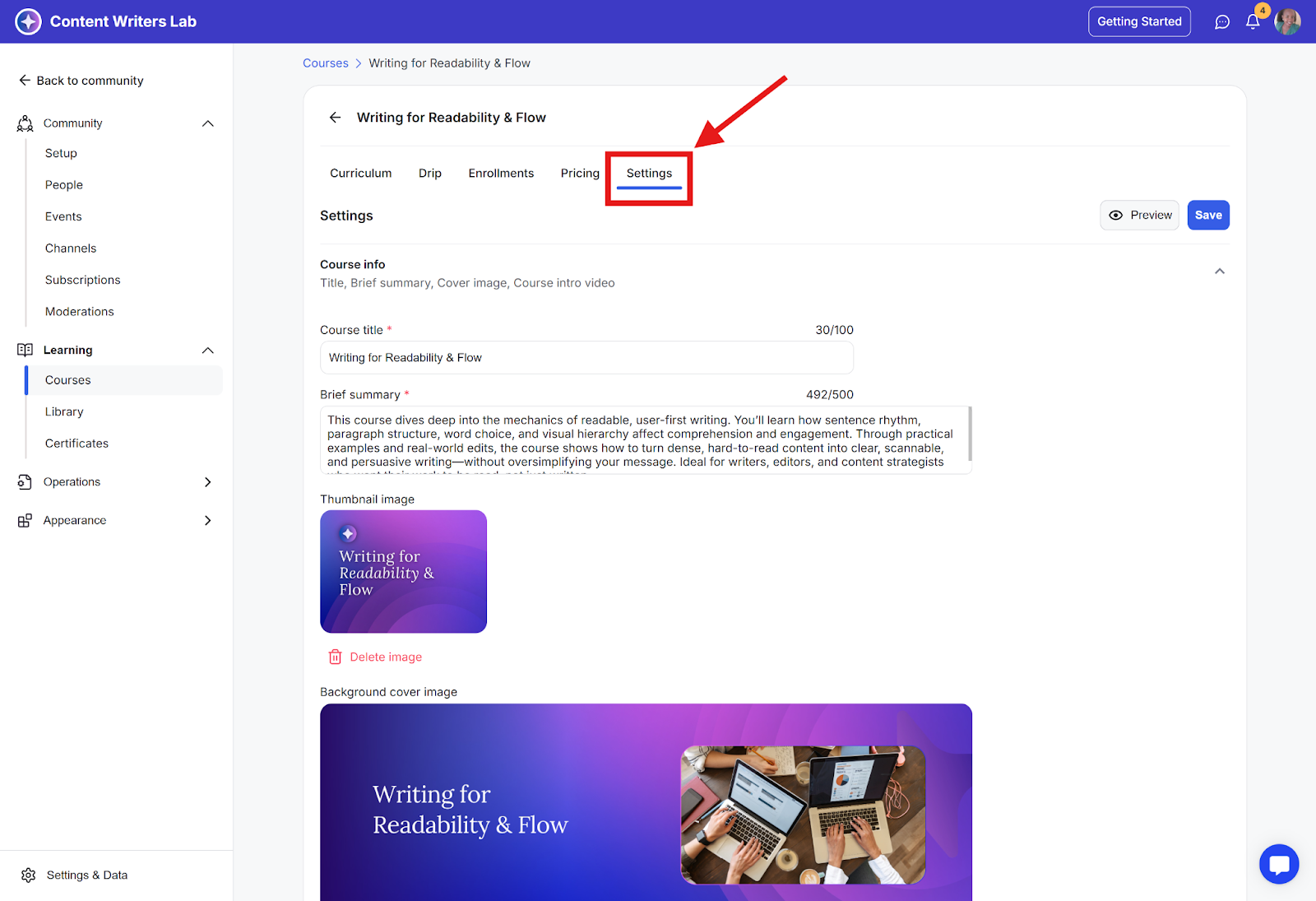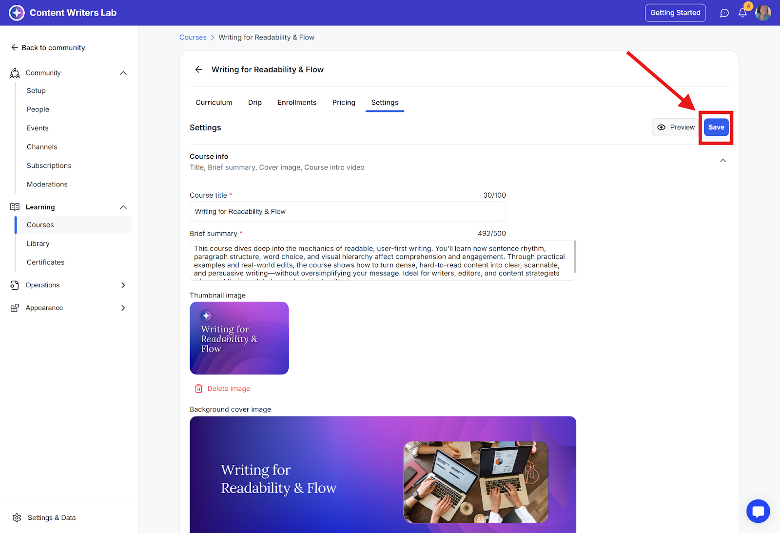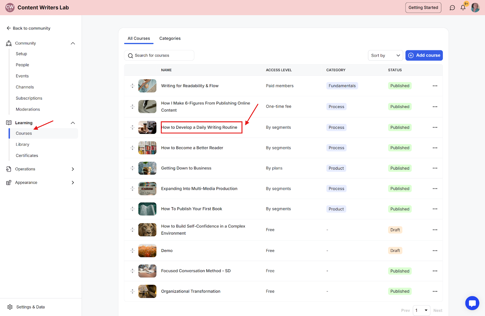 Step 2: On the side menu, click on Learning and select Courses. Then select the course you want to add presenters to.