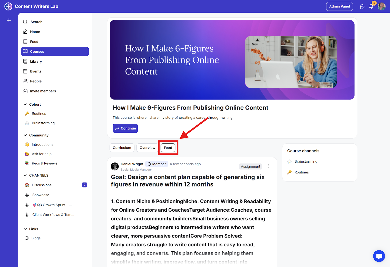 Step 2: Click the Feed tab. This shows assignment activity for all students in the course.