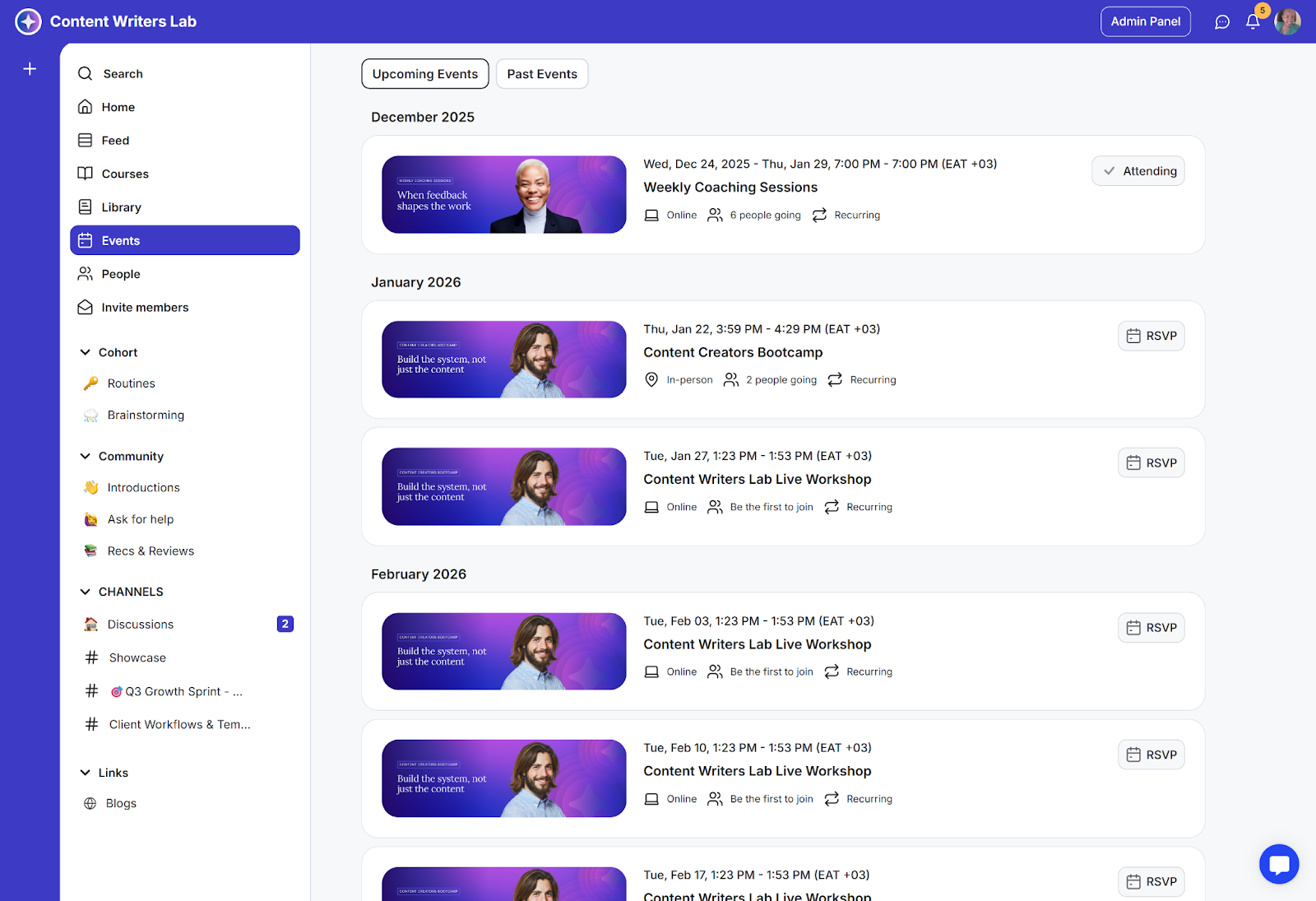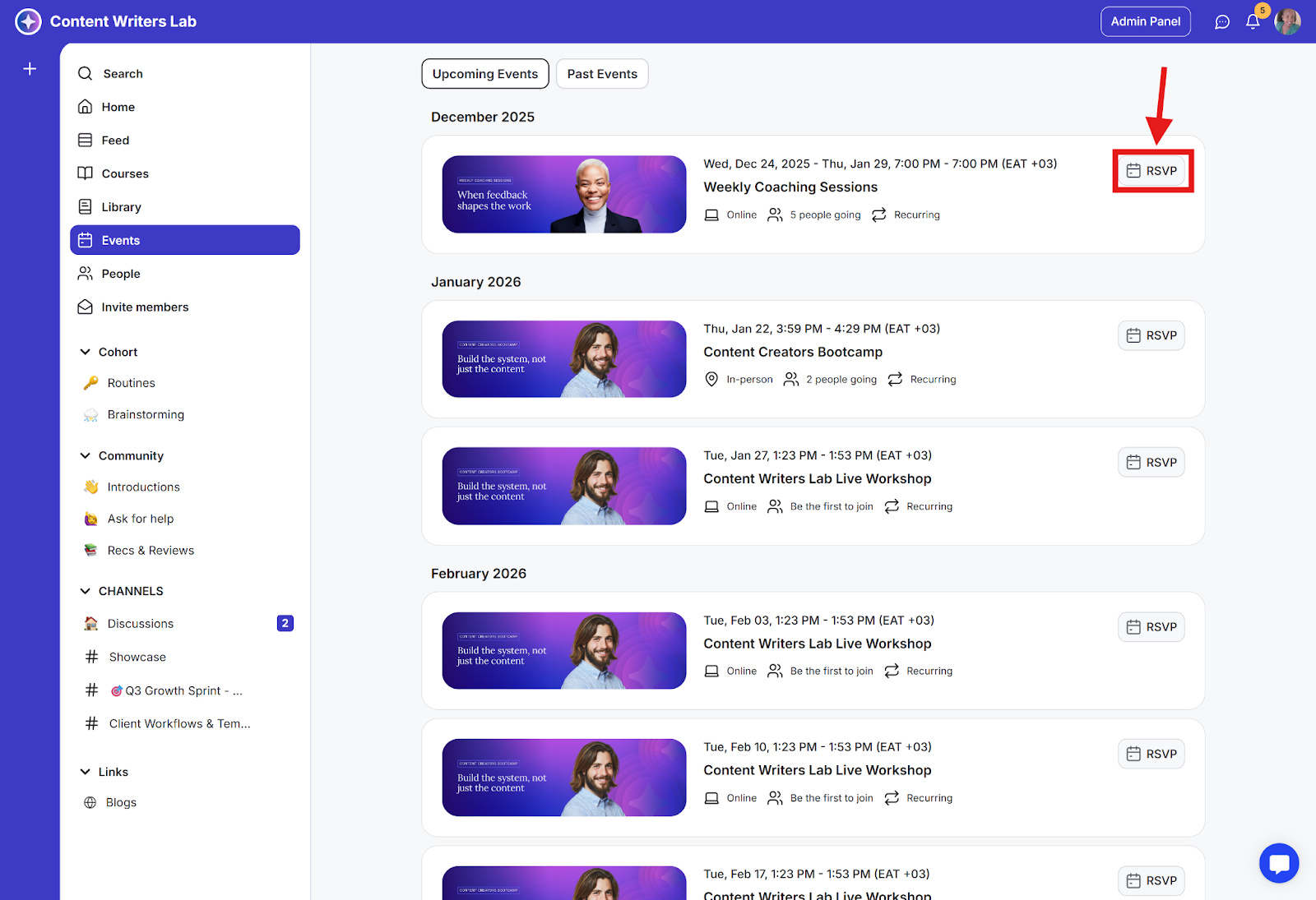Step 2: Click on the RSVP button for the event you wish to attend.