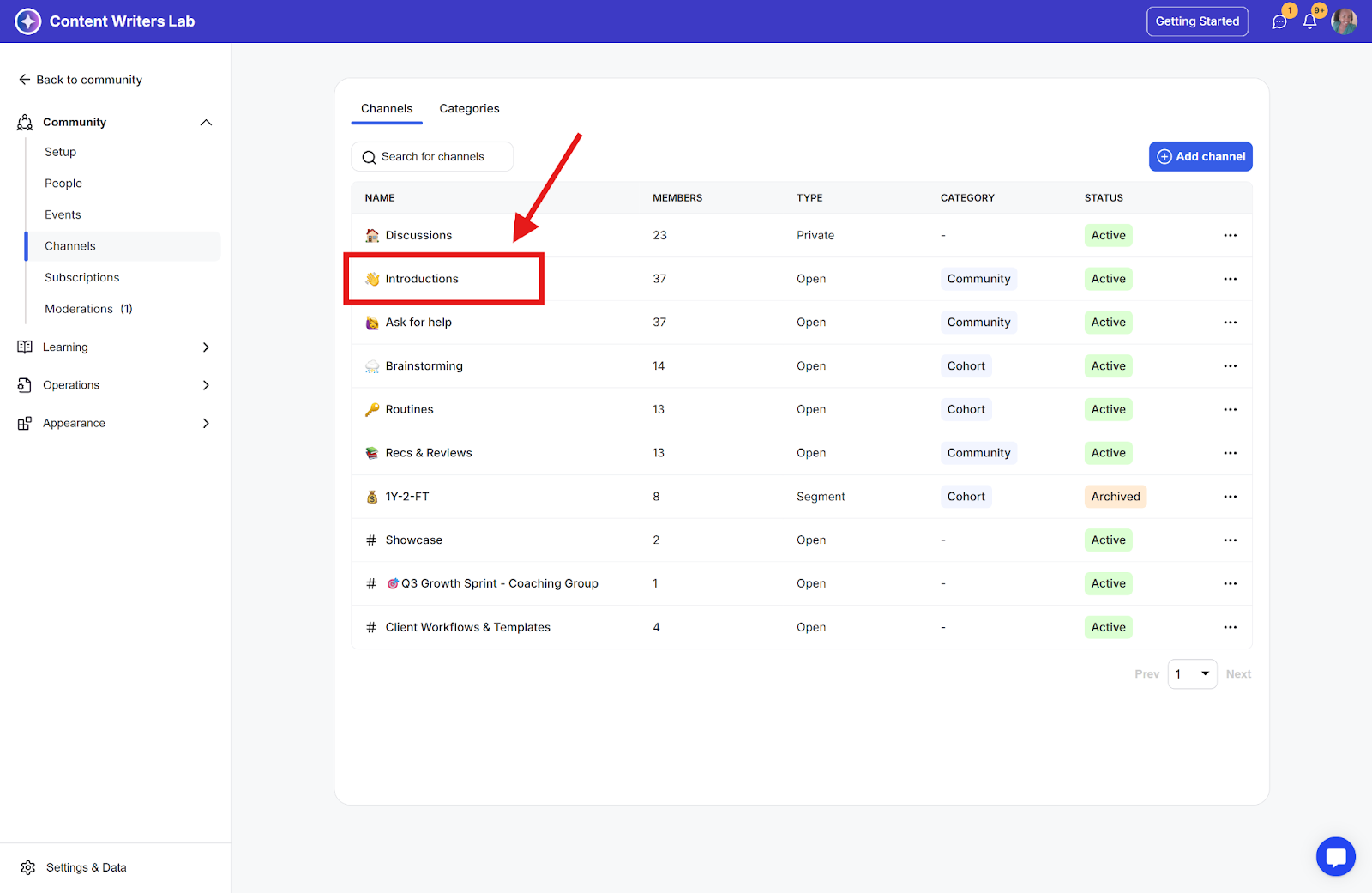 Step 2: Locate the channel you want to configure and click its name to access the channel's settings