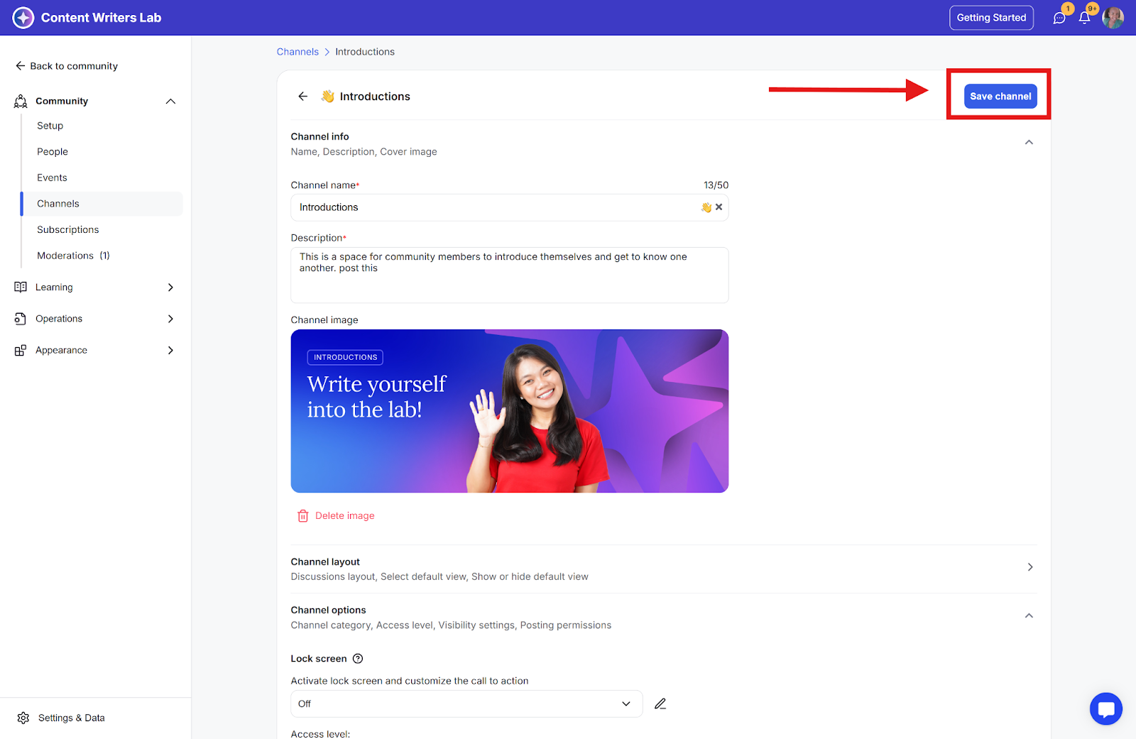Step 7: Click the Save Channel button to apply the changes.