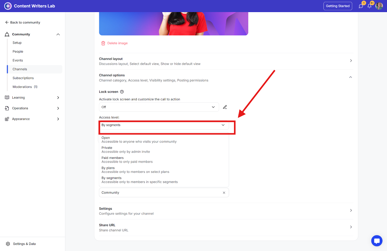 Community: Only community members will see the channel/resource, but only the segment members will be able to access it.