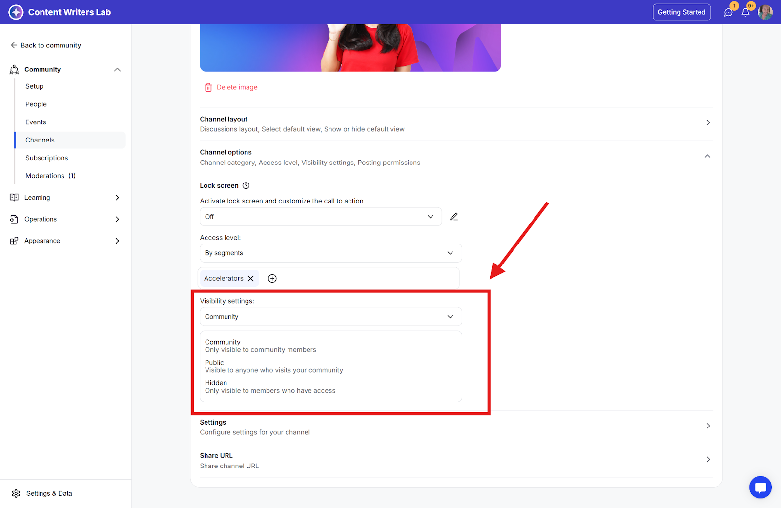 Hidden: Only segment members will be able to see and access the channel/resource from the course list/library content list/event list.