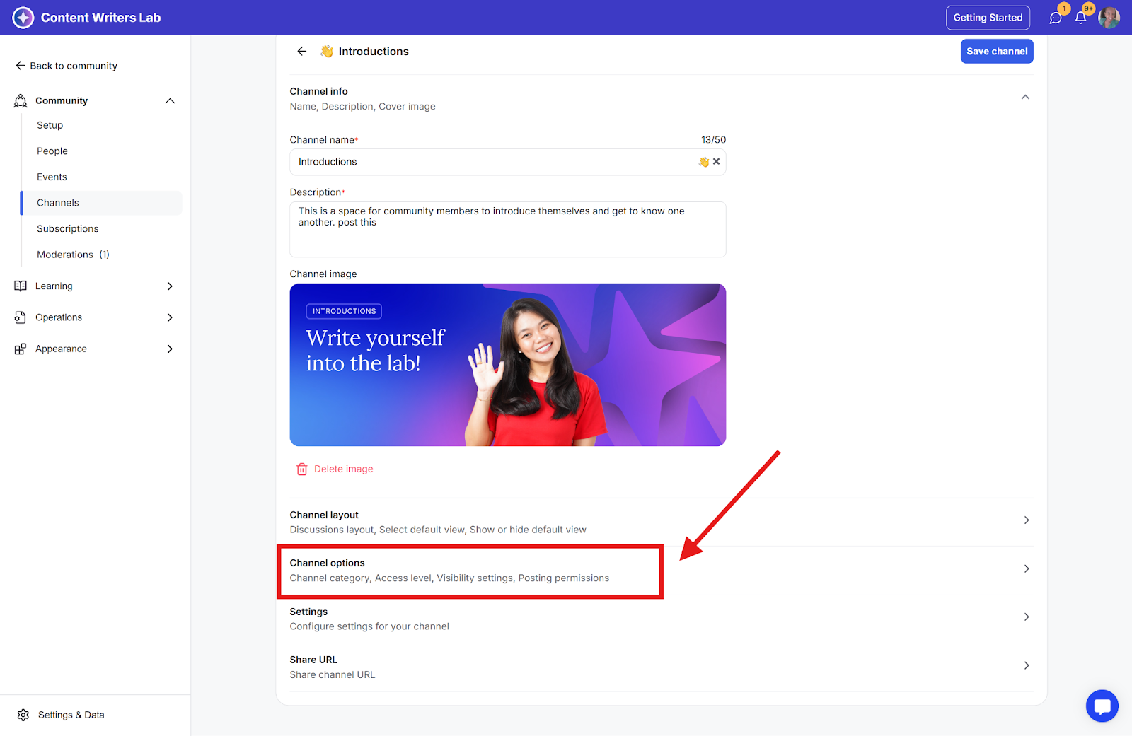 Step 3: Scroll down to the Channel Options section.