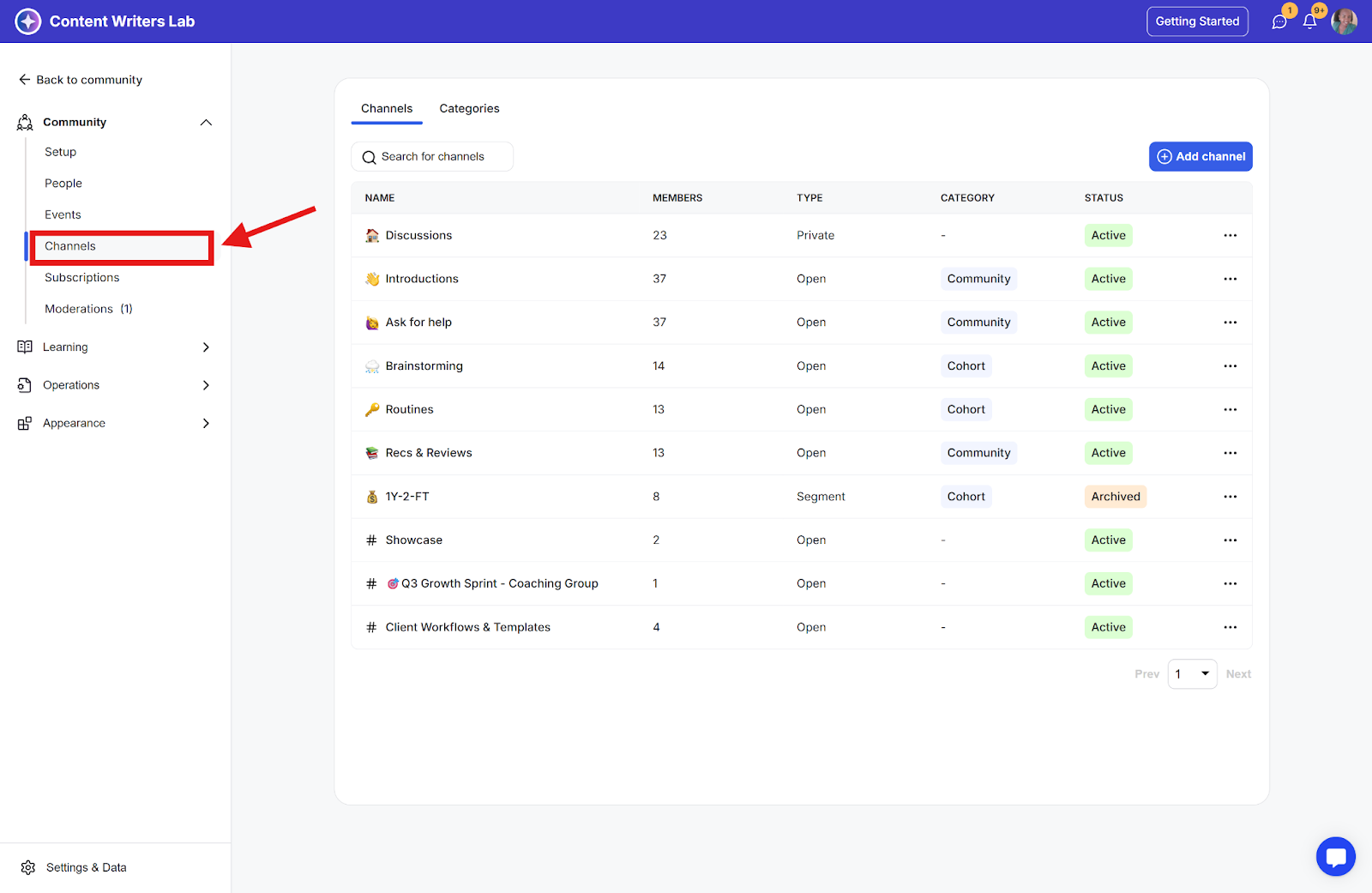Step 1: Go to the Admin Panel and click on Channels in the side menu.