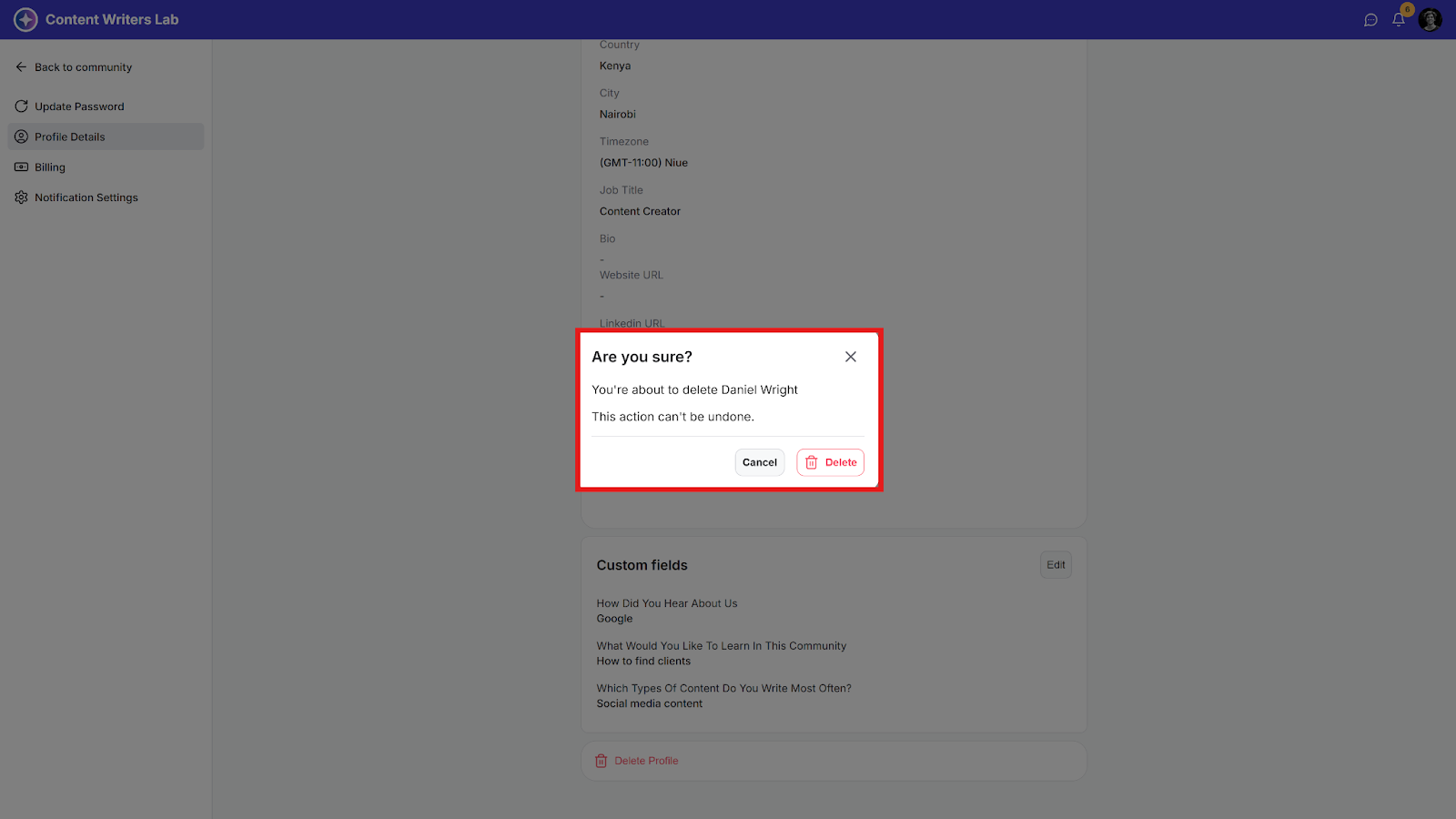 Note: You will be logged out after you delete your profile and will have to sign up again if you want to access the community as a member.a