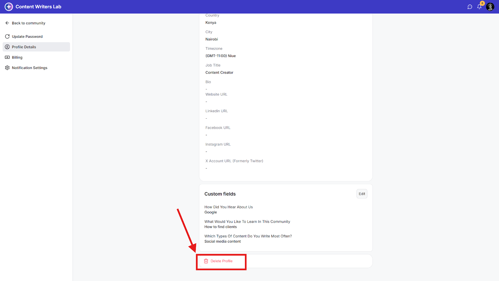 This guide shows you how to permanently delete your community profile as a member.