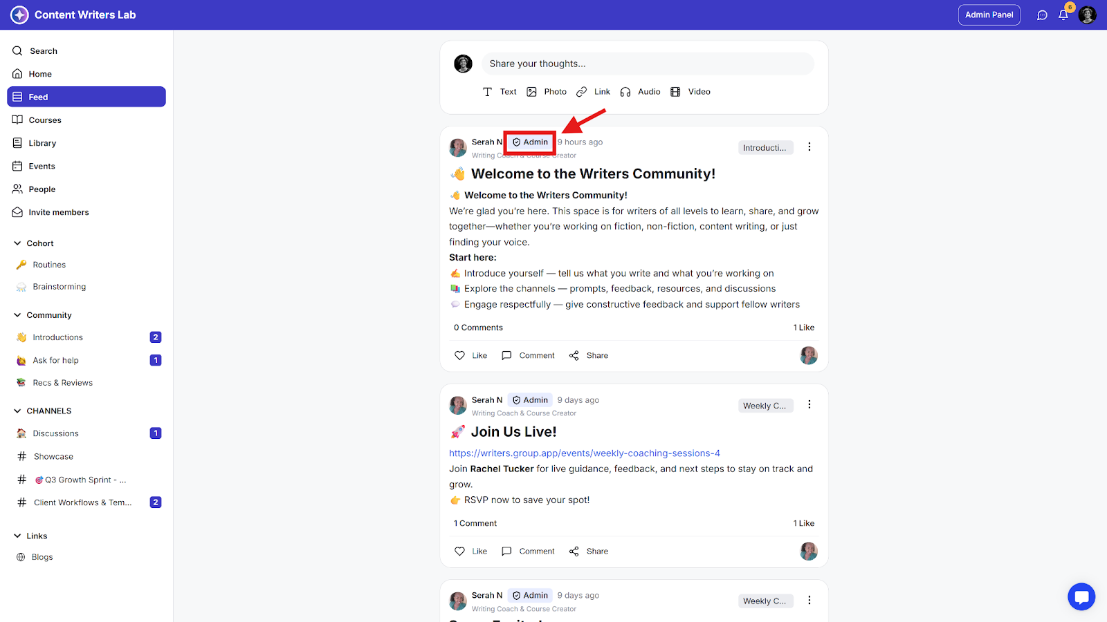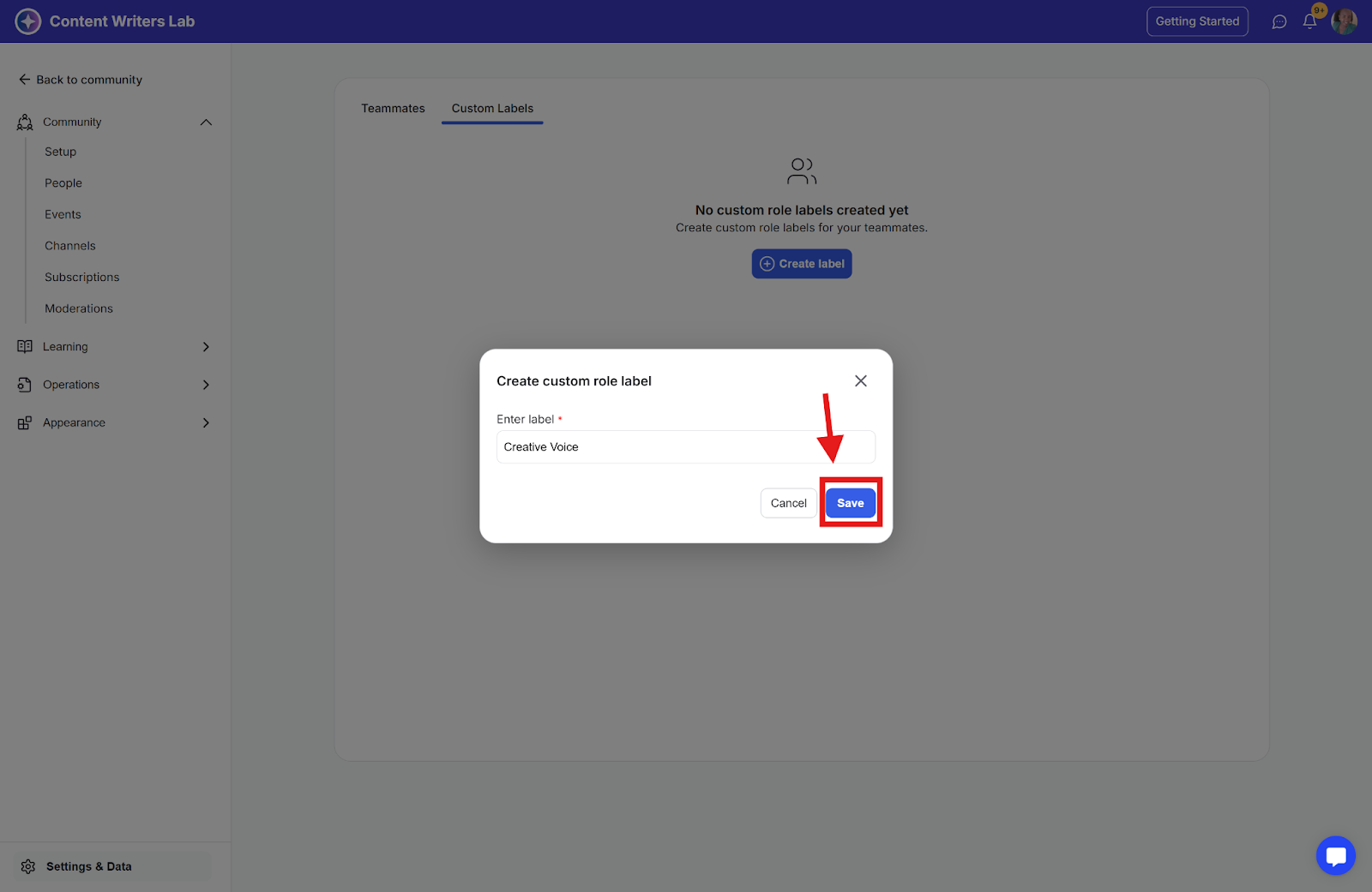 Step 5: You can type in your custom label. The custom label will appear as a badge right of the member’s name on the member’s profile on places like the channel posts, or the people’s page.
