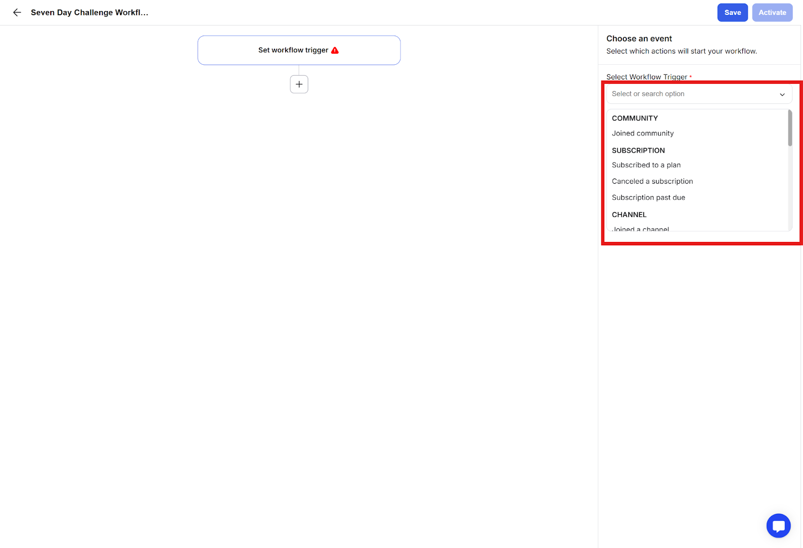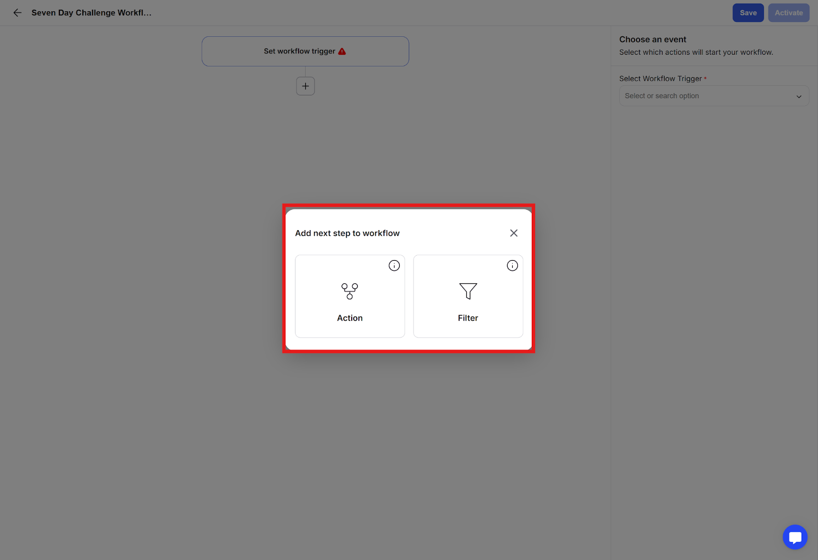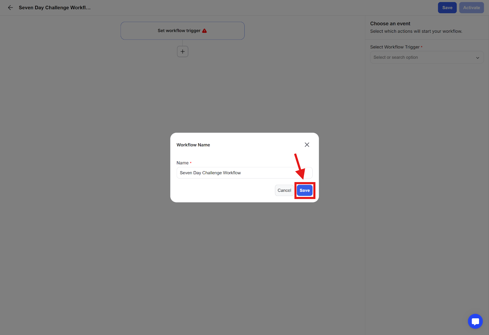 Step 3: Enter a workflow name (e.g., "Seven Day Challenge Workflow") and click Save.