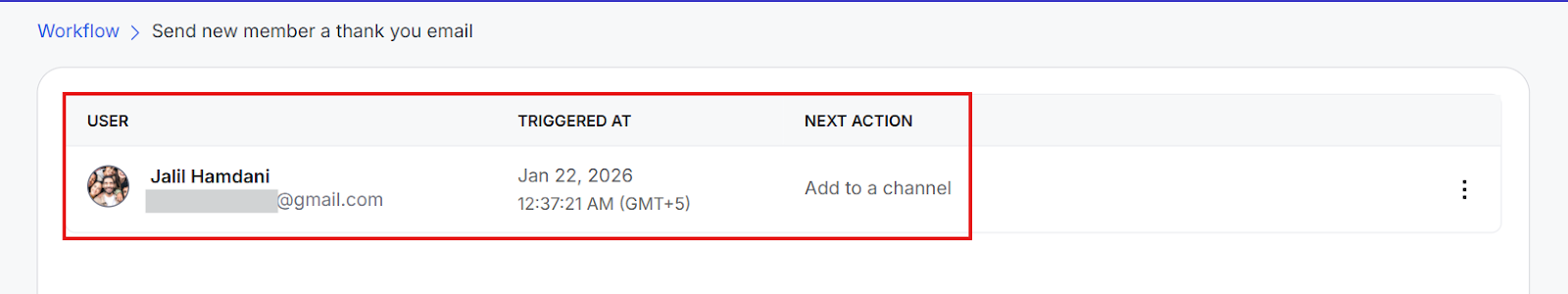 Once you have created a workflow, you have the option to view members who are still active while a workflow is still executing.
