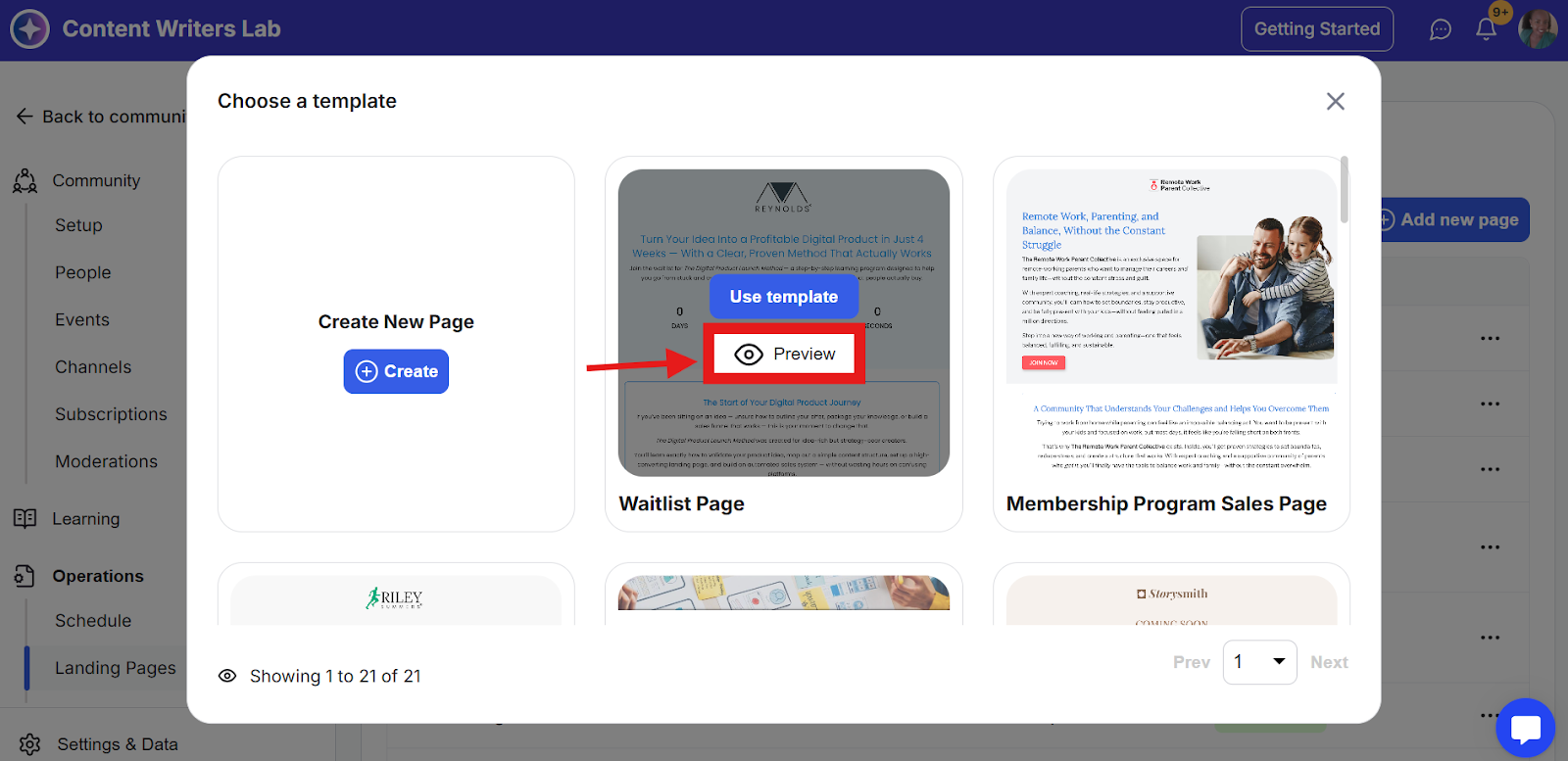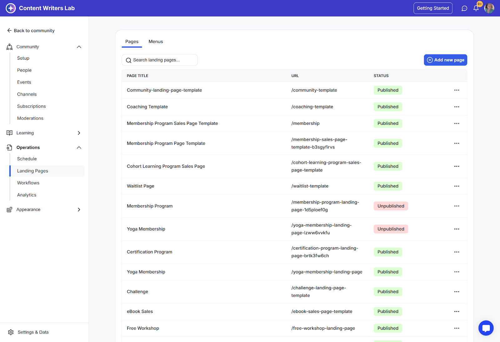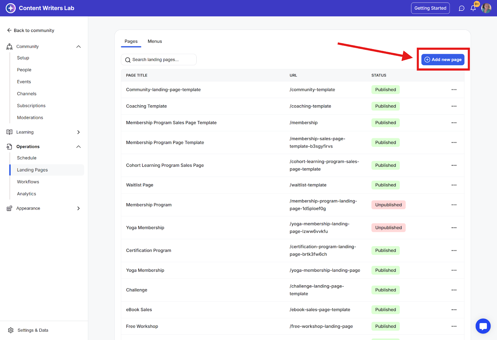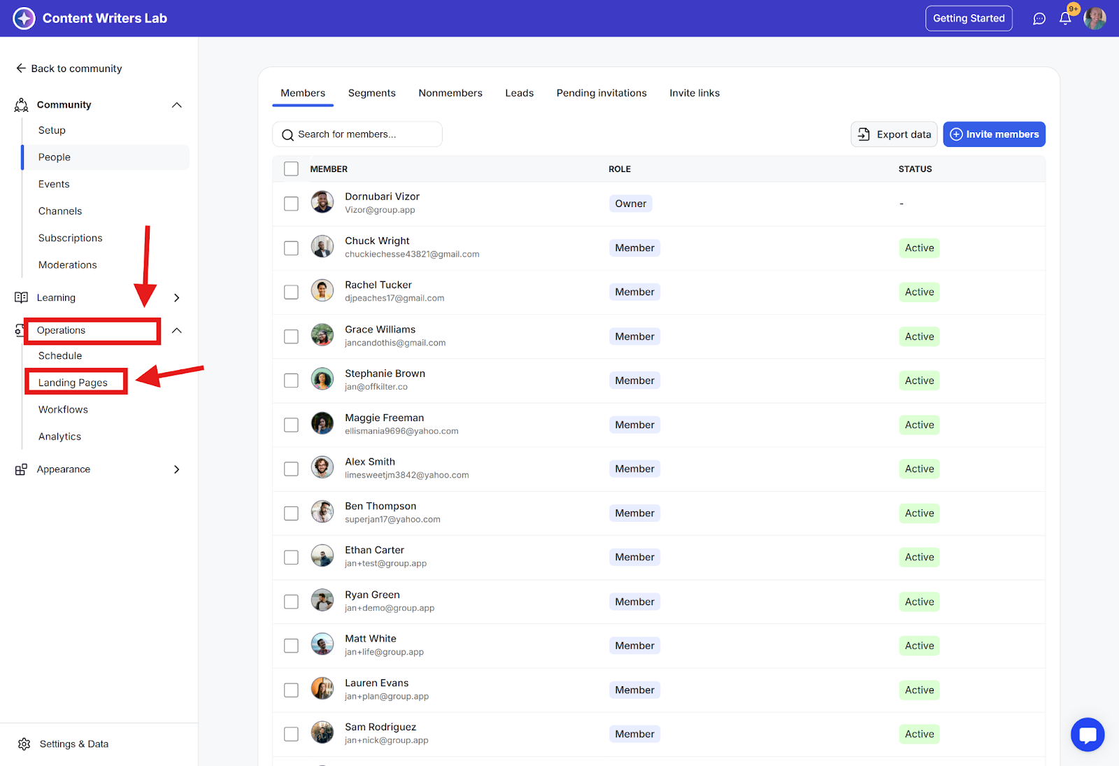 Step 2: Click on Operations in the side menu and select Landing Pages.