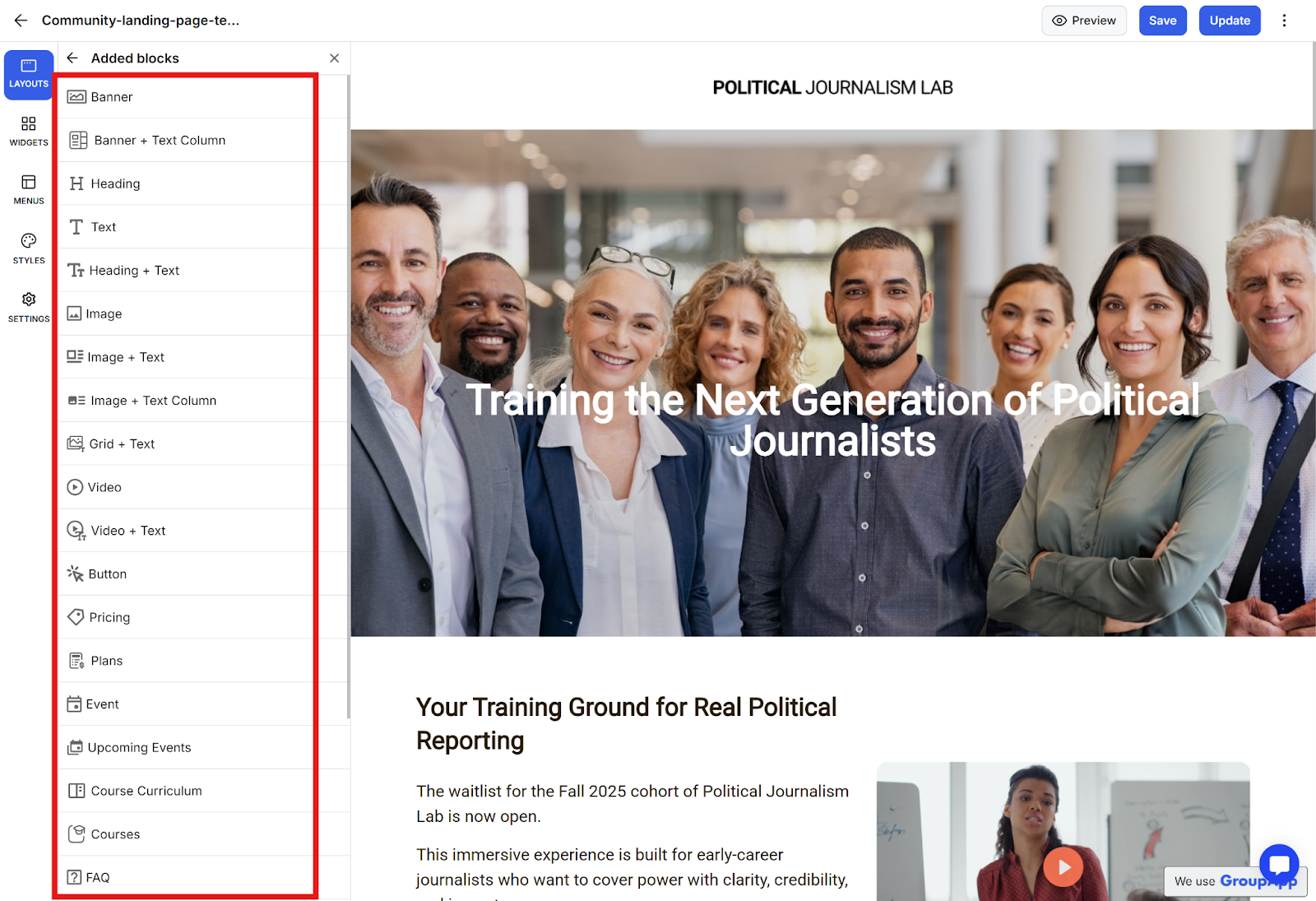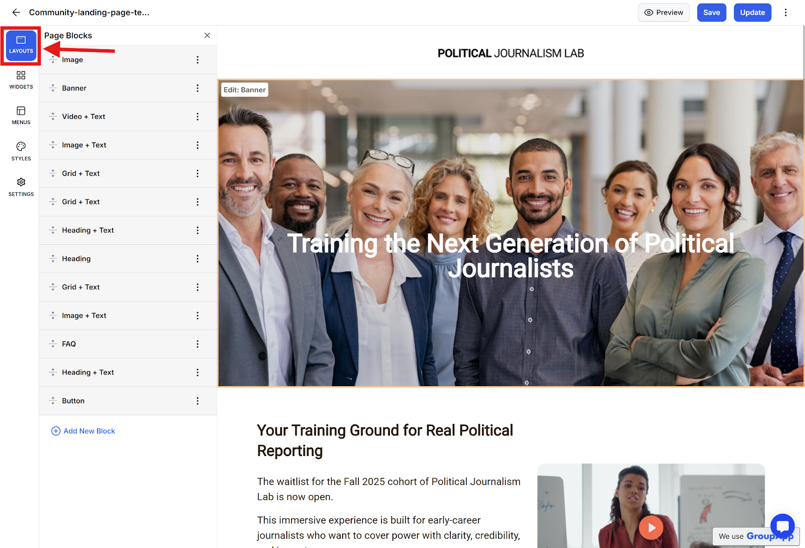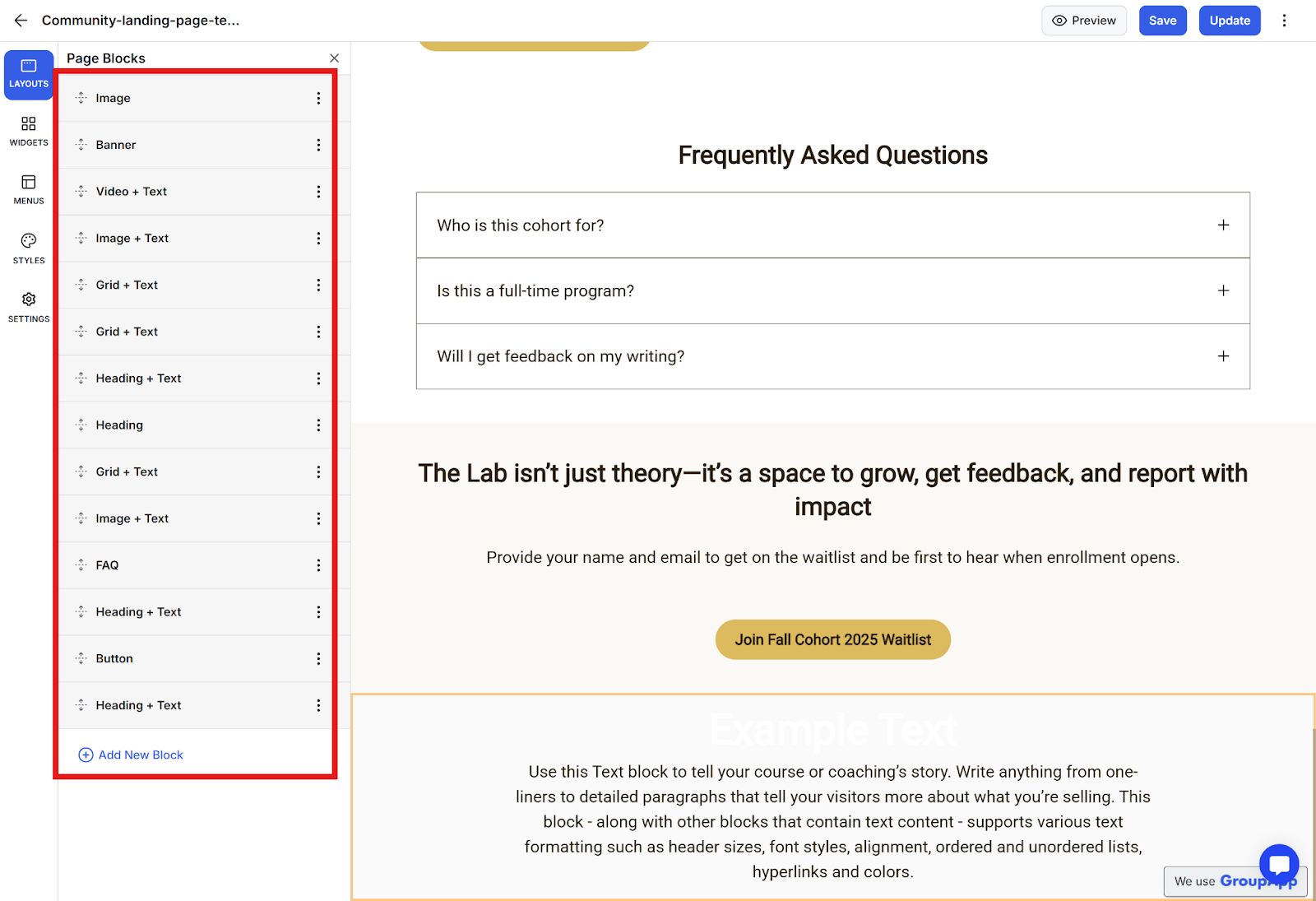 Note: Organizing your blocks with clear names helps maintain a well-structured landing page that's easy to update.