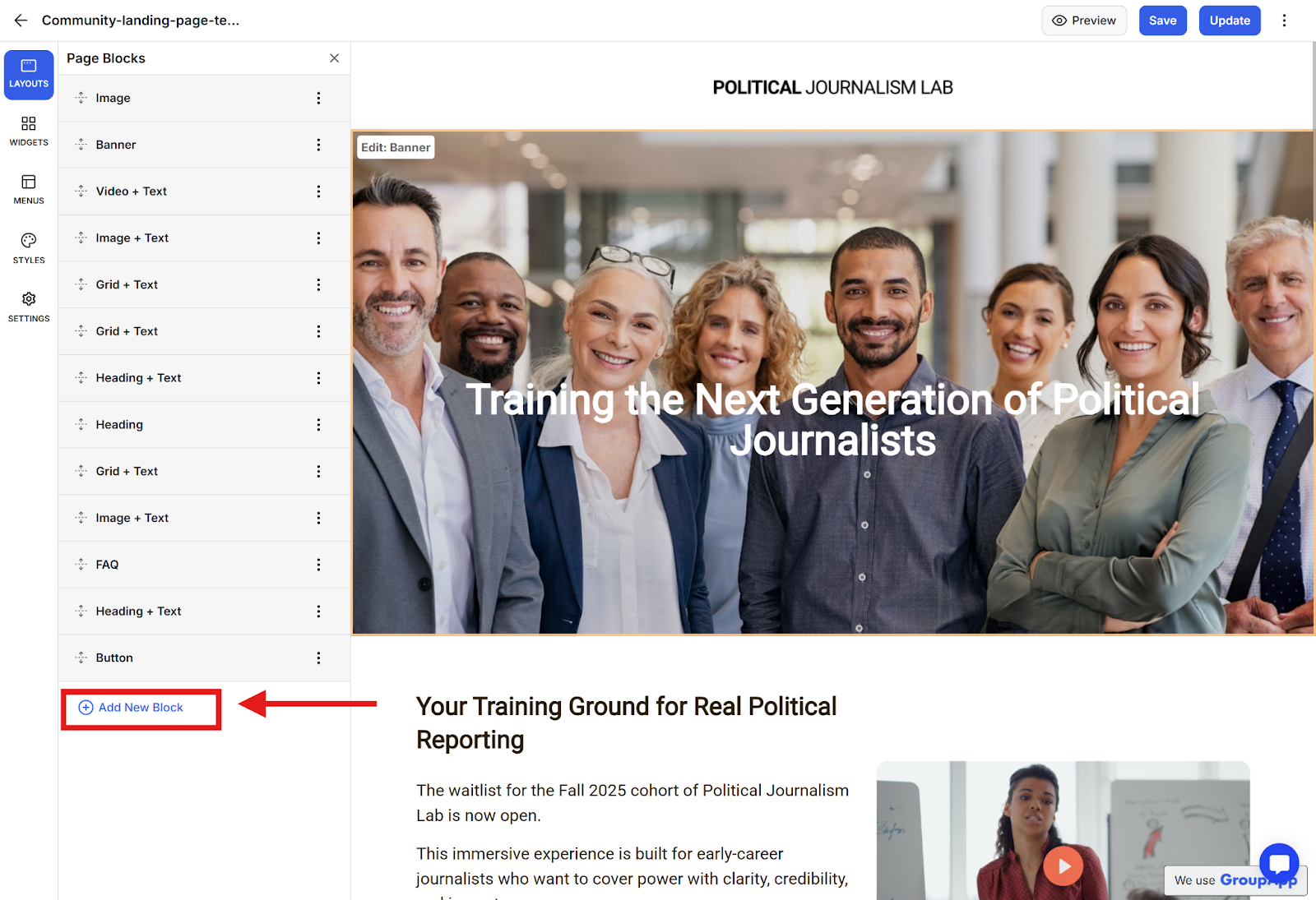 Step 5: Select Add New Block.