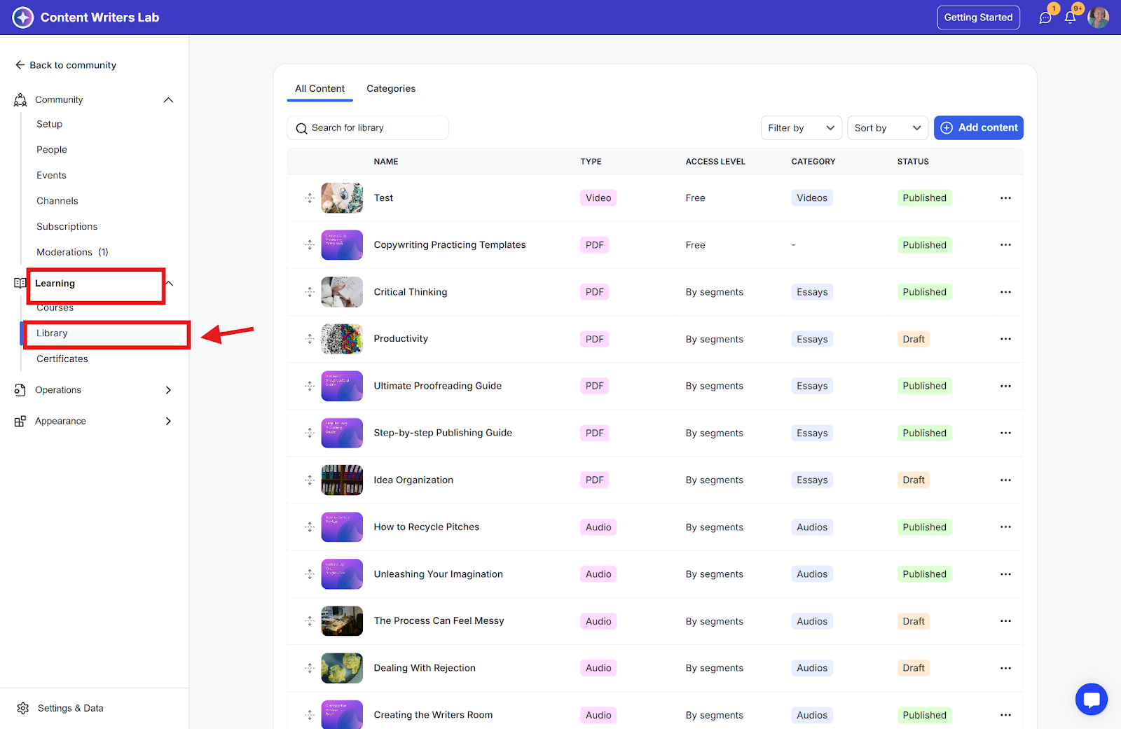 Step 3: Select the library content that is set to an access level of One-time Fee.