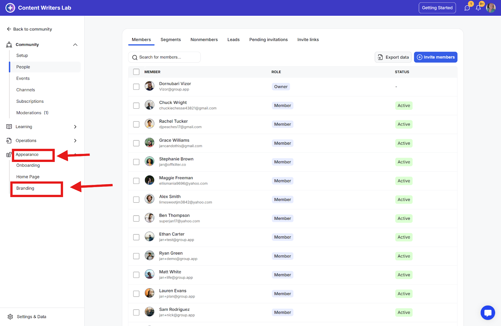 Step 2: Click Appearance and select Branding.