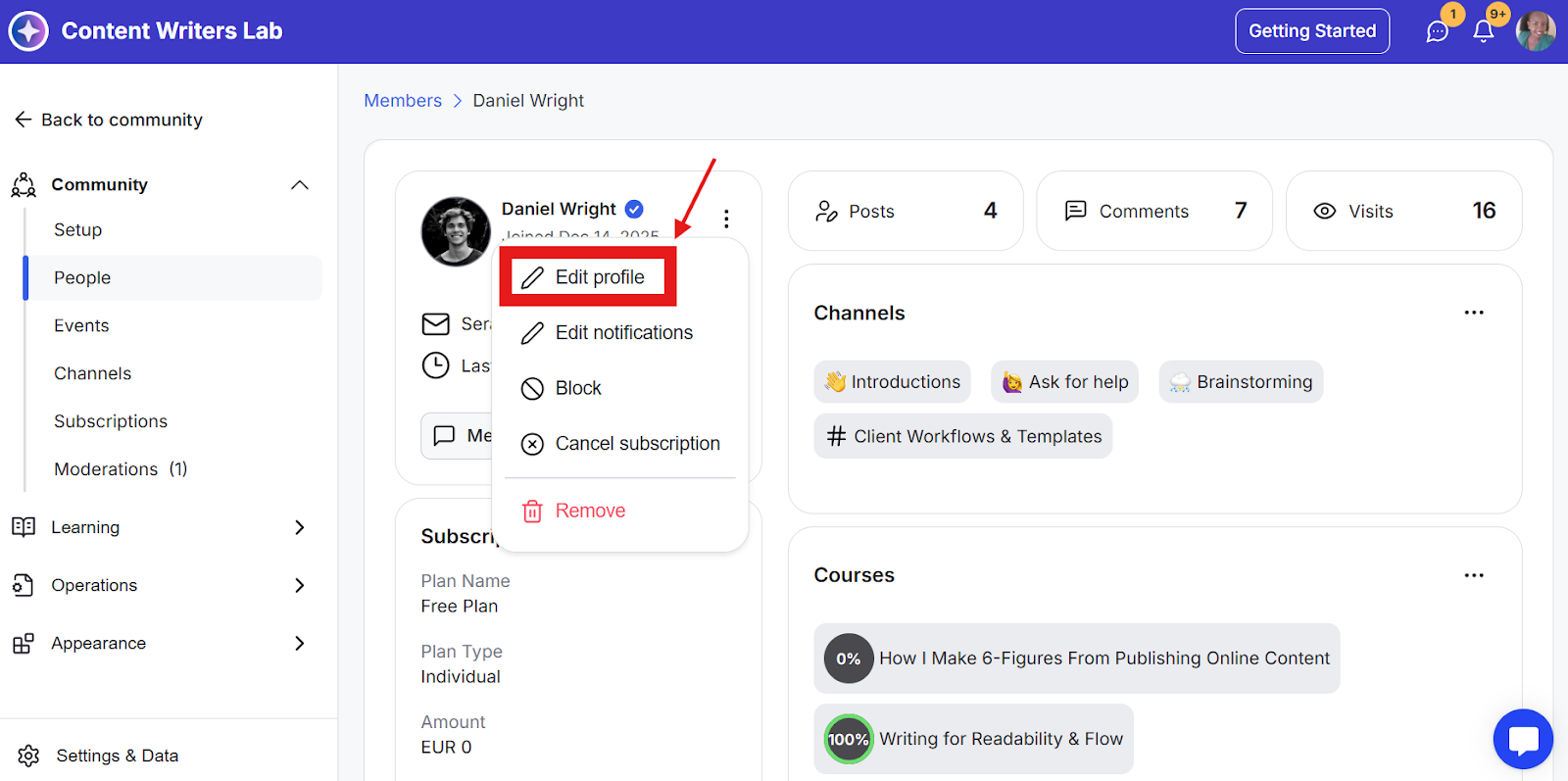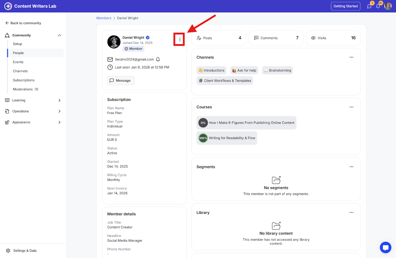 Step 5: On the member record page, click the three-dot menu (⋮) next to their name.