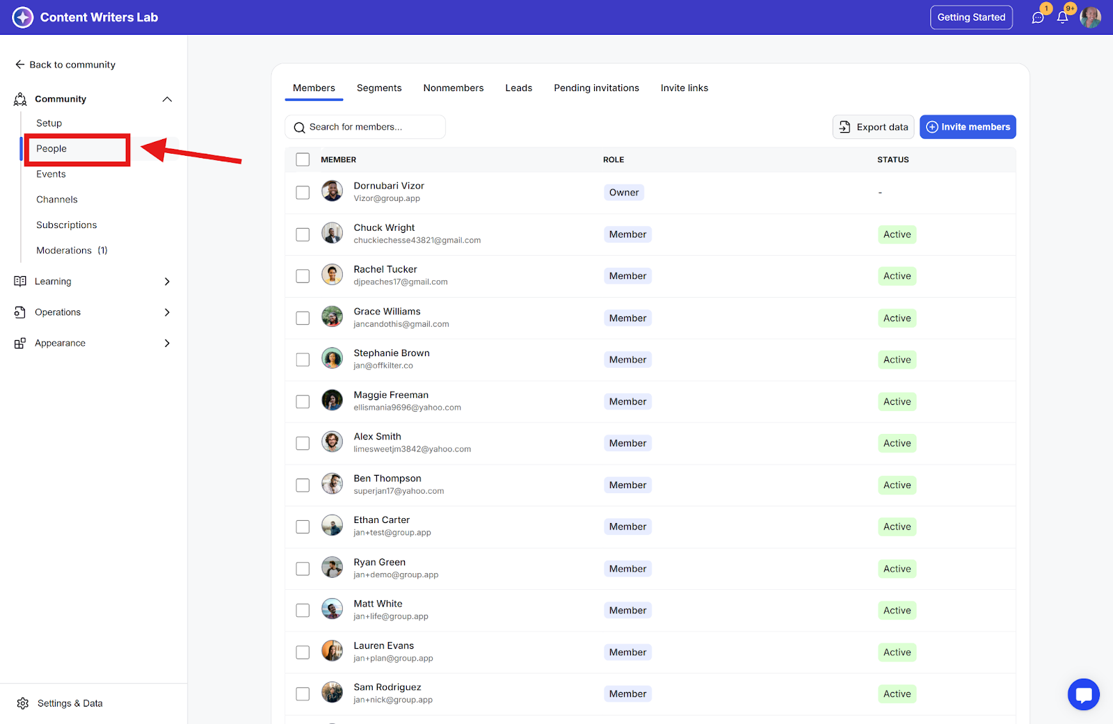 Step 2: Navigate to People on the side menu