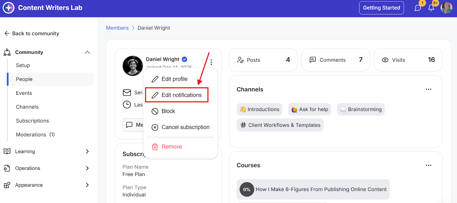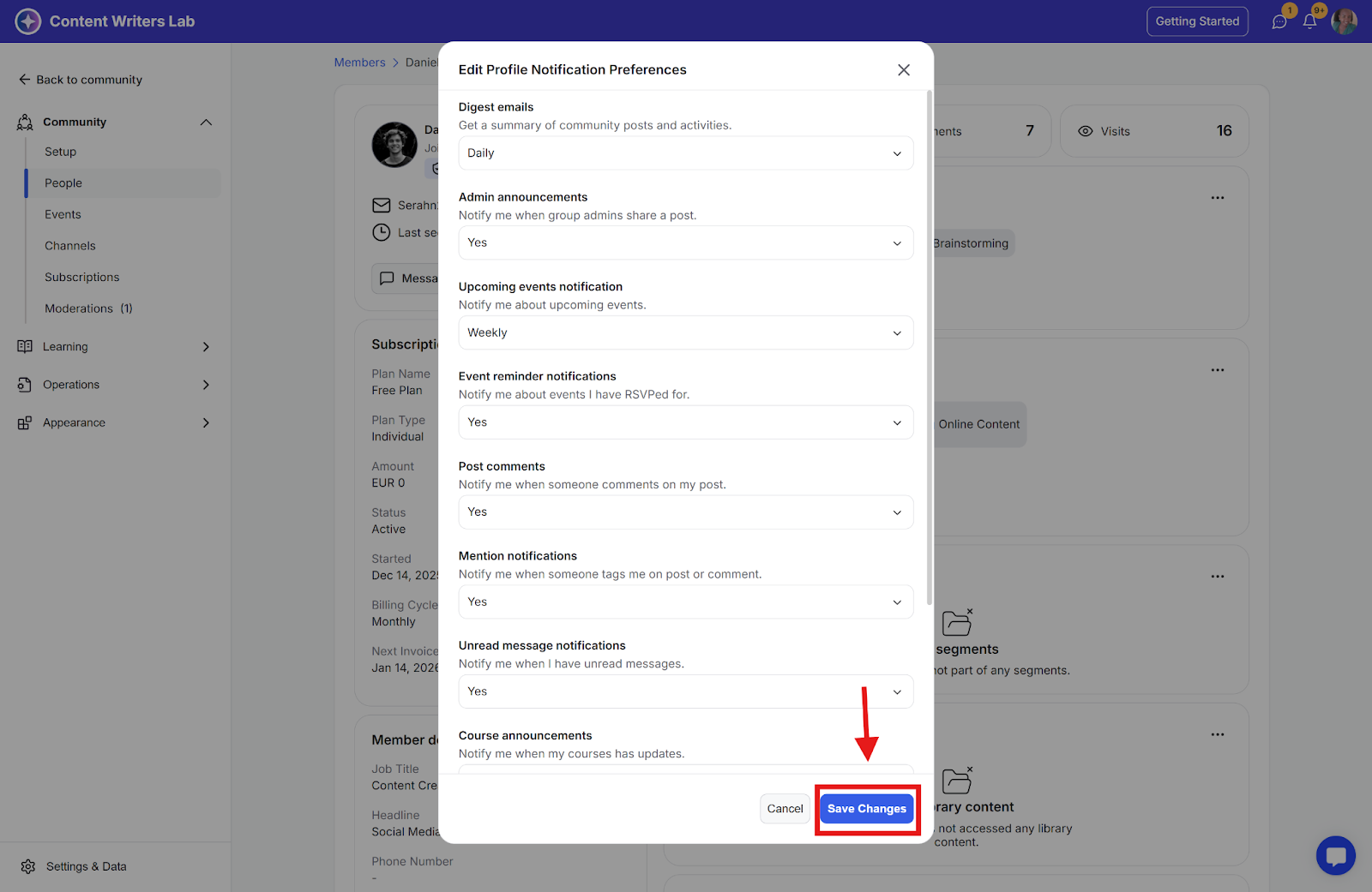 As a community admin, you can manage notification preferences for individual members of your community. This guide explains how to modify these settings.