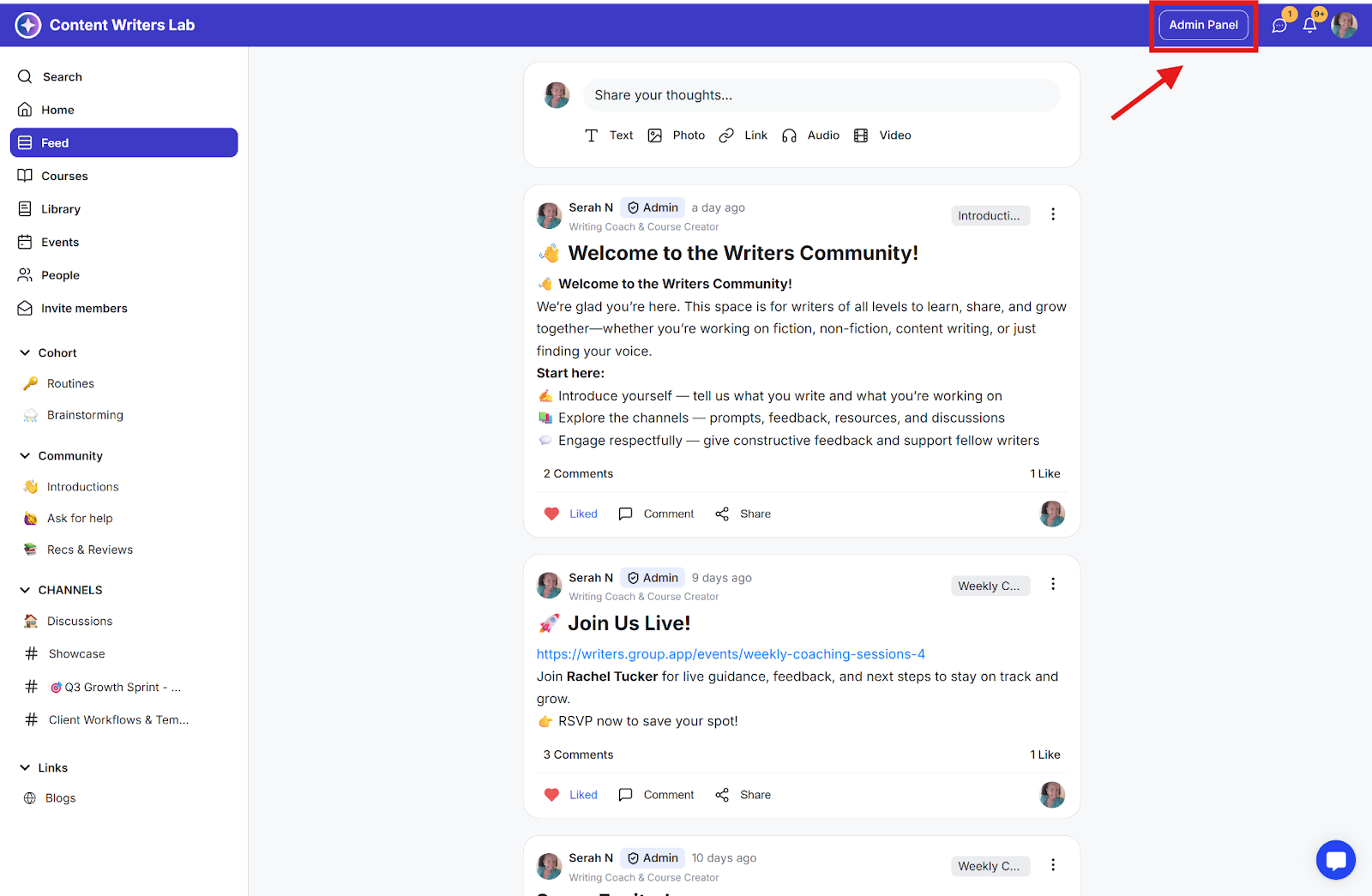 Admin announcements