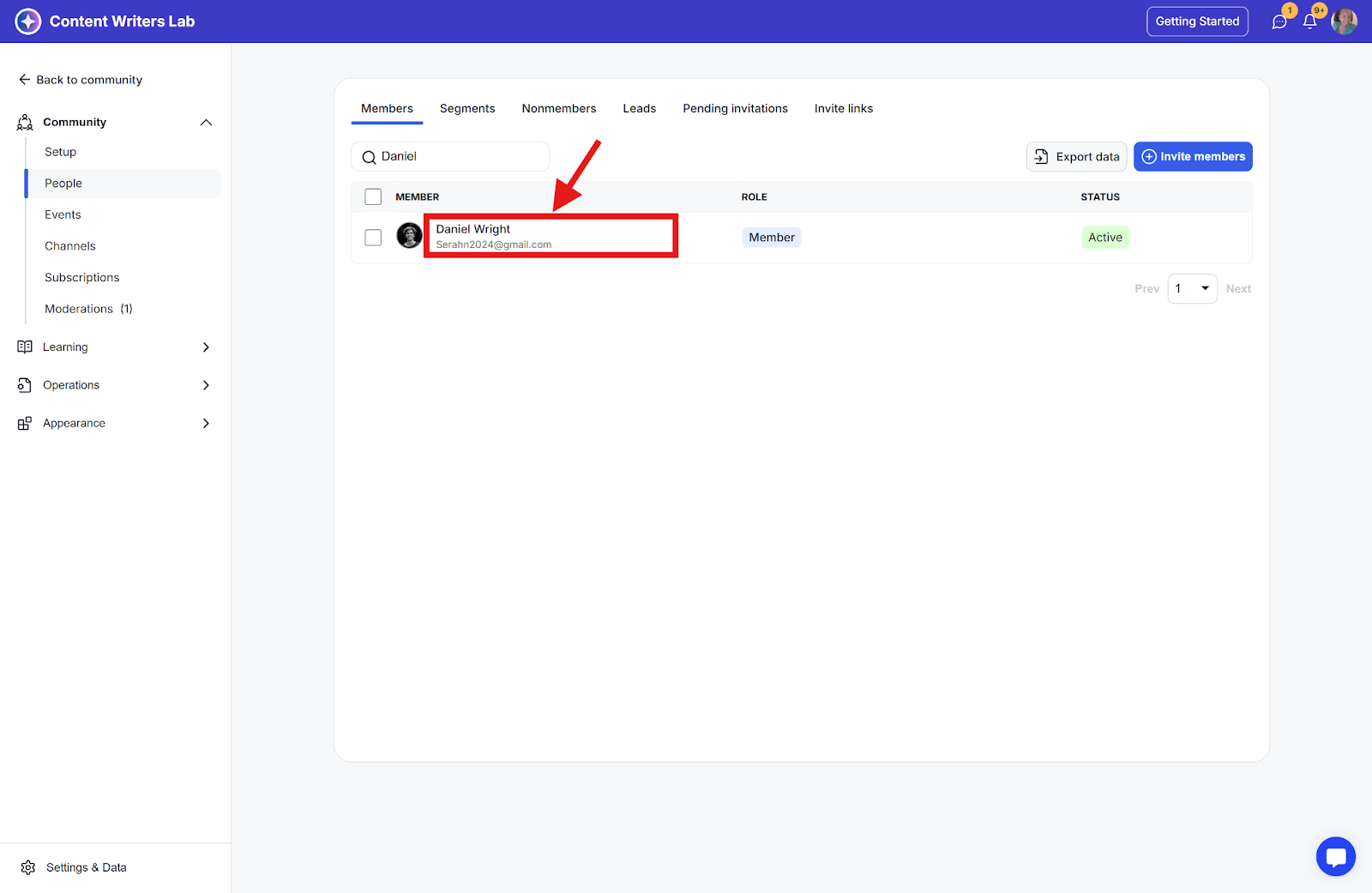 Step 3: Locate the member in the list or use the search function.