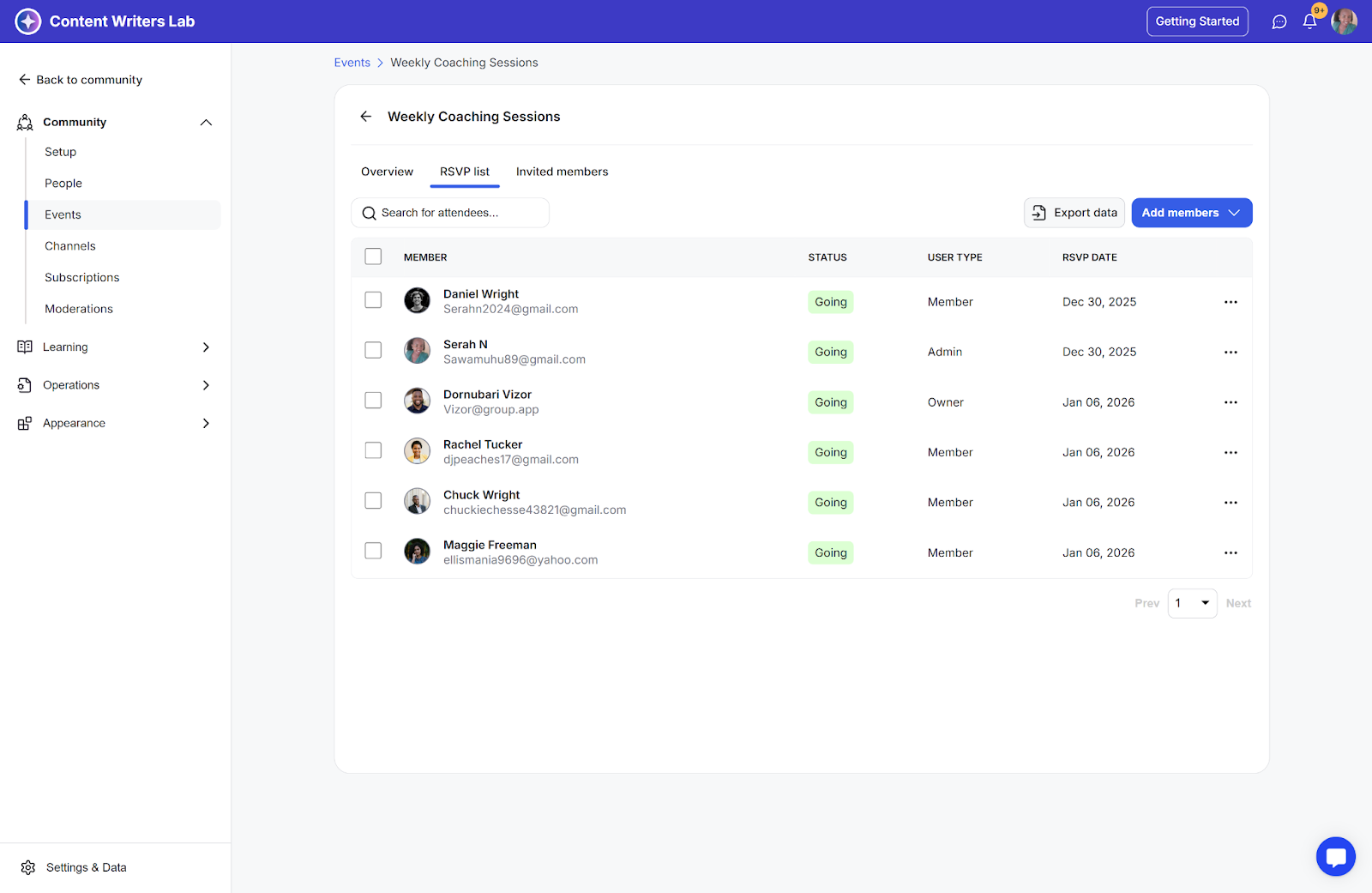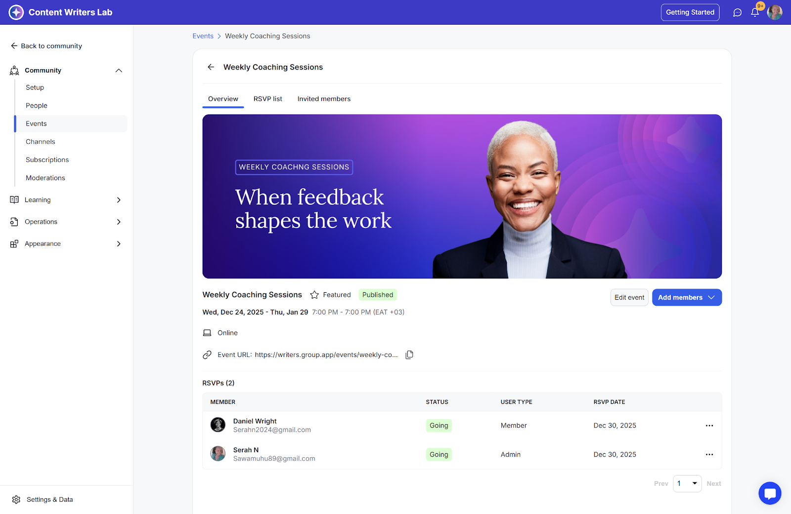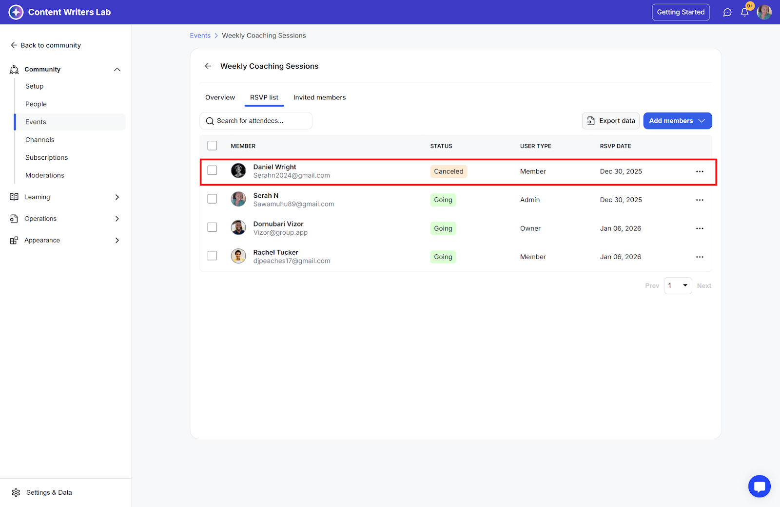 Step 3: The status of the member will change to going, and they will also be added to the RSVP list.