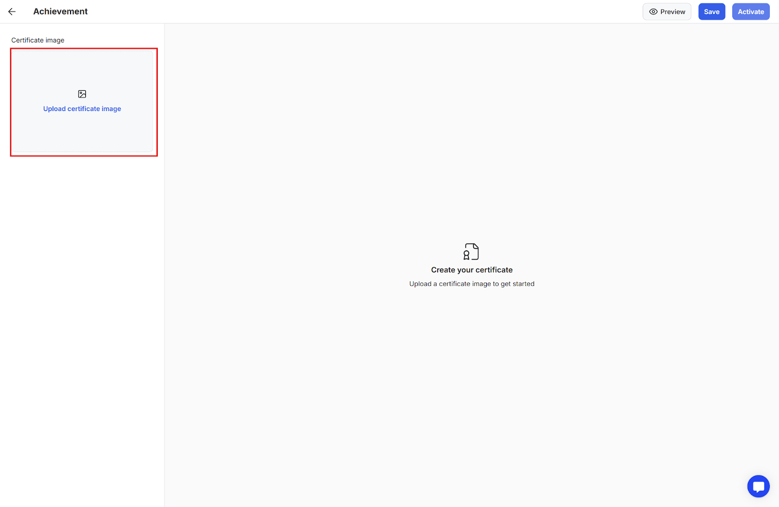 Step 1: Once inside the certificate builder, click Upload Certificate image to upload the image and start editing.