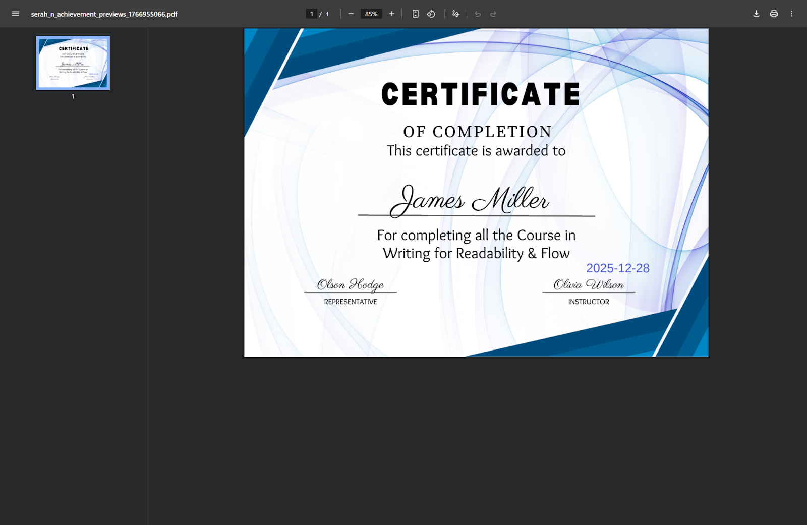 Step 3: The preview will open on a new browser tab in the form of a downloadable PDF.