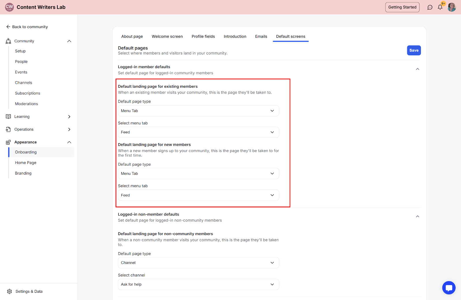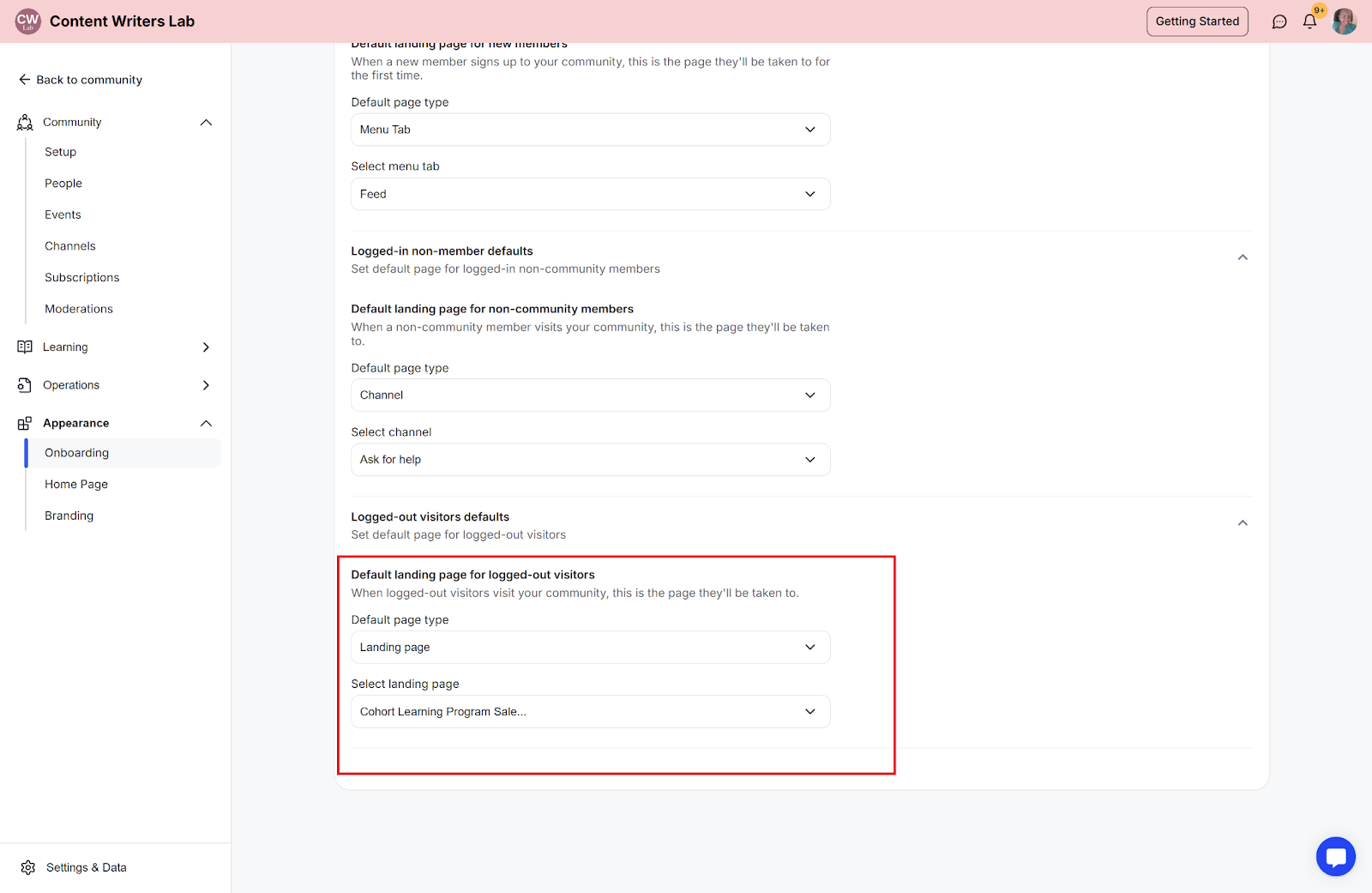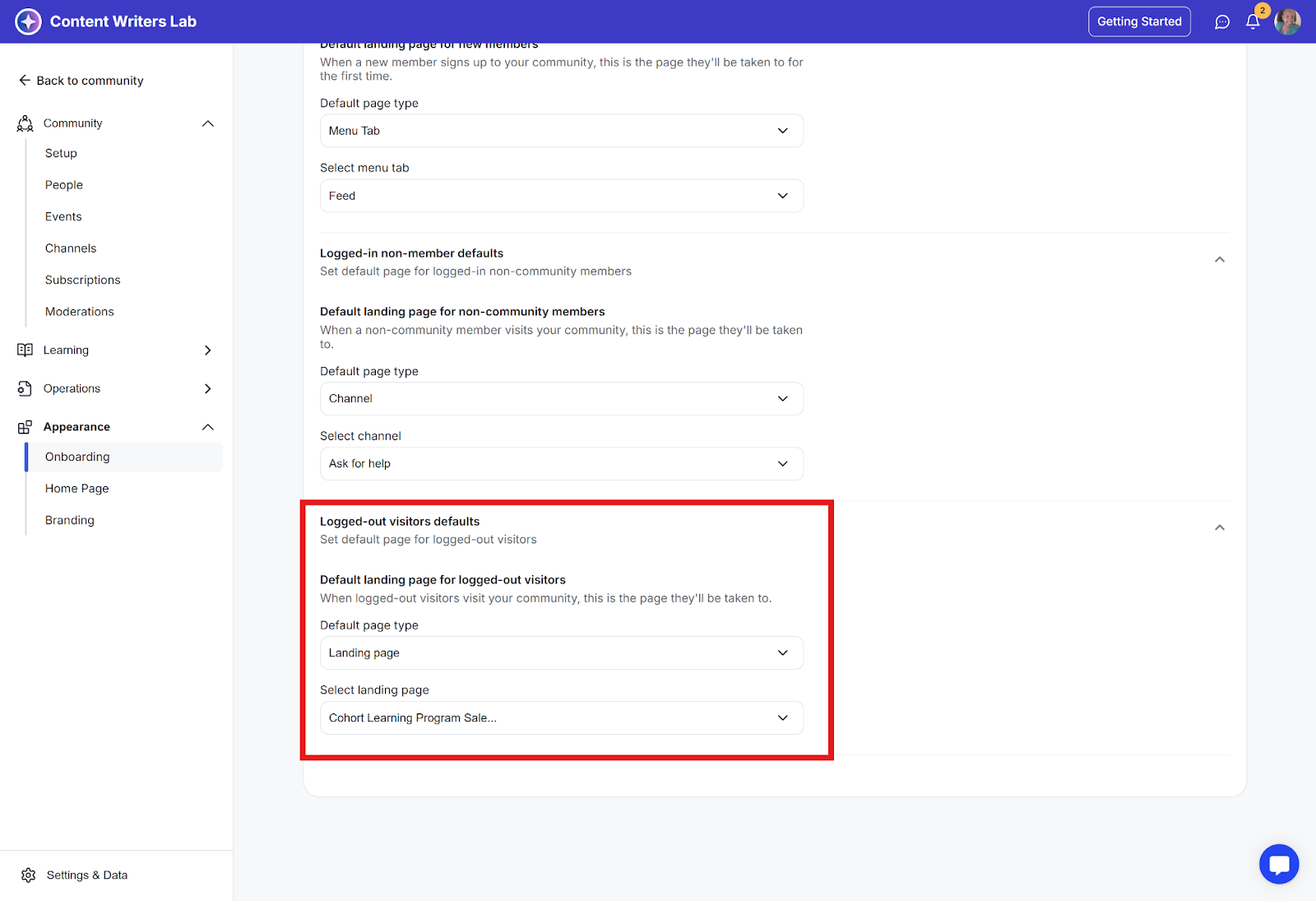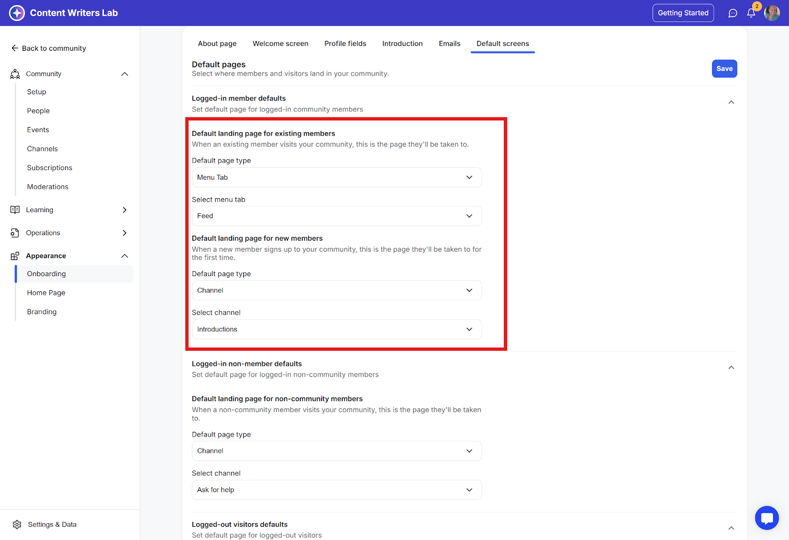 This feature lets you set the default landing page for your community. You can customize the experience for different types of users by setting default landing pages.
