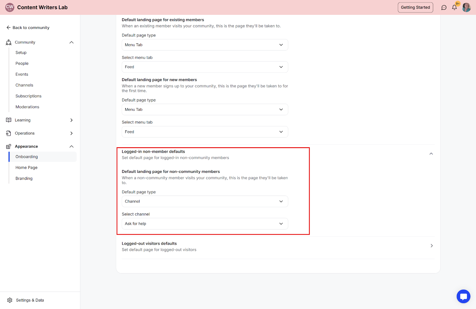 These are people who are logged in but not yet part of your community. You can also choose a default page for them, such as one that encourages them to join or explore.