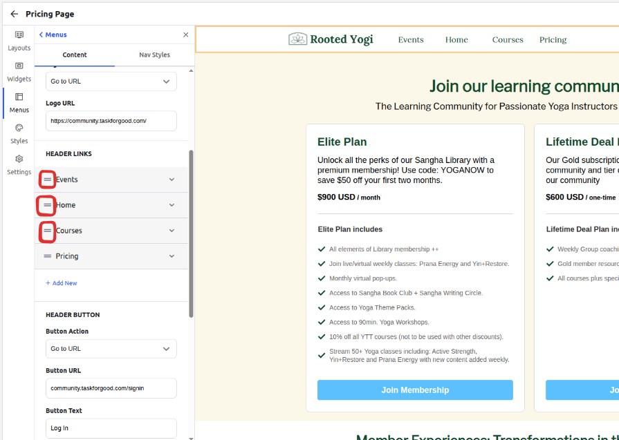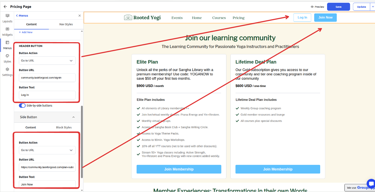 Call-to-Action (CTA) Buttons: "Sign Up," "Login," or "Join Now" (useful for membership sites).