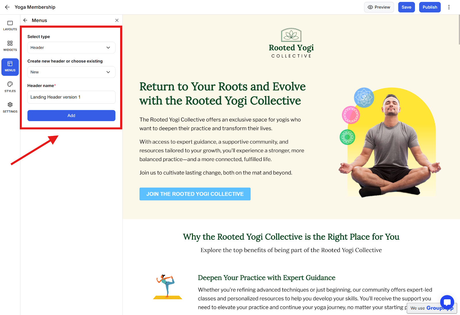 Customize the navigation elements of your landing pages by setting up a header and footer menu.