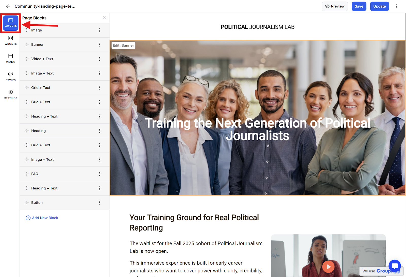 Step 9: You can save and preview the changes. Once you are ready, you can publish your updates to the live page.
