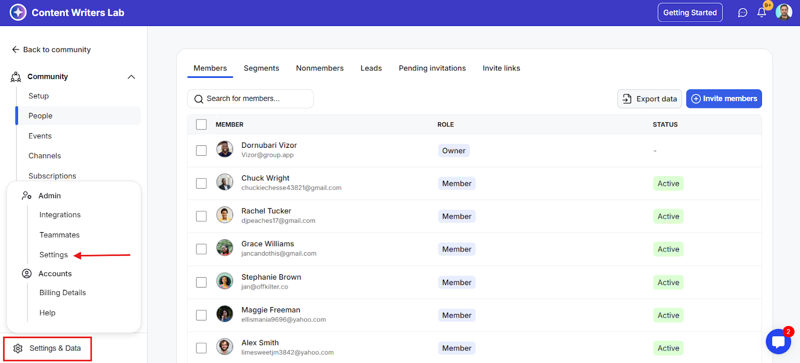 Step 2: In the side menu, go to Settings & Data, select Settings.