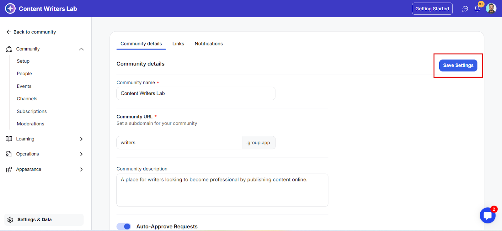 Step 3: Scroll down to the Community Switcher section. Select or deselect the toggle to enable or disable the switcher.