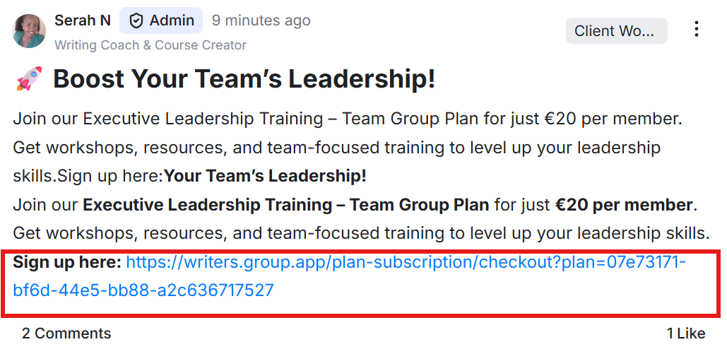 You can make it easy for members to join your subscription plans by providing a checkout link. This link takes them straight to the sign-up page for a plan. Use it to promote your plans, add it to your community or website, and help members upgrade or change their subscription quickly.