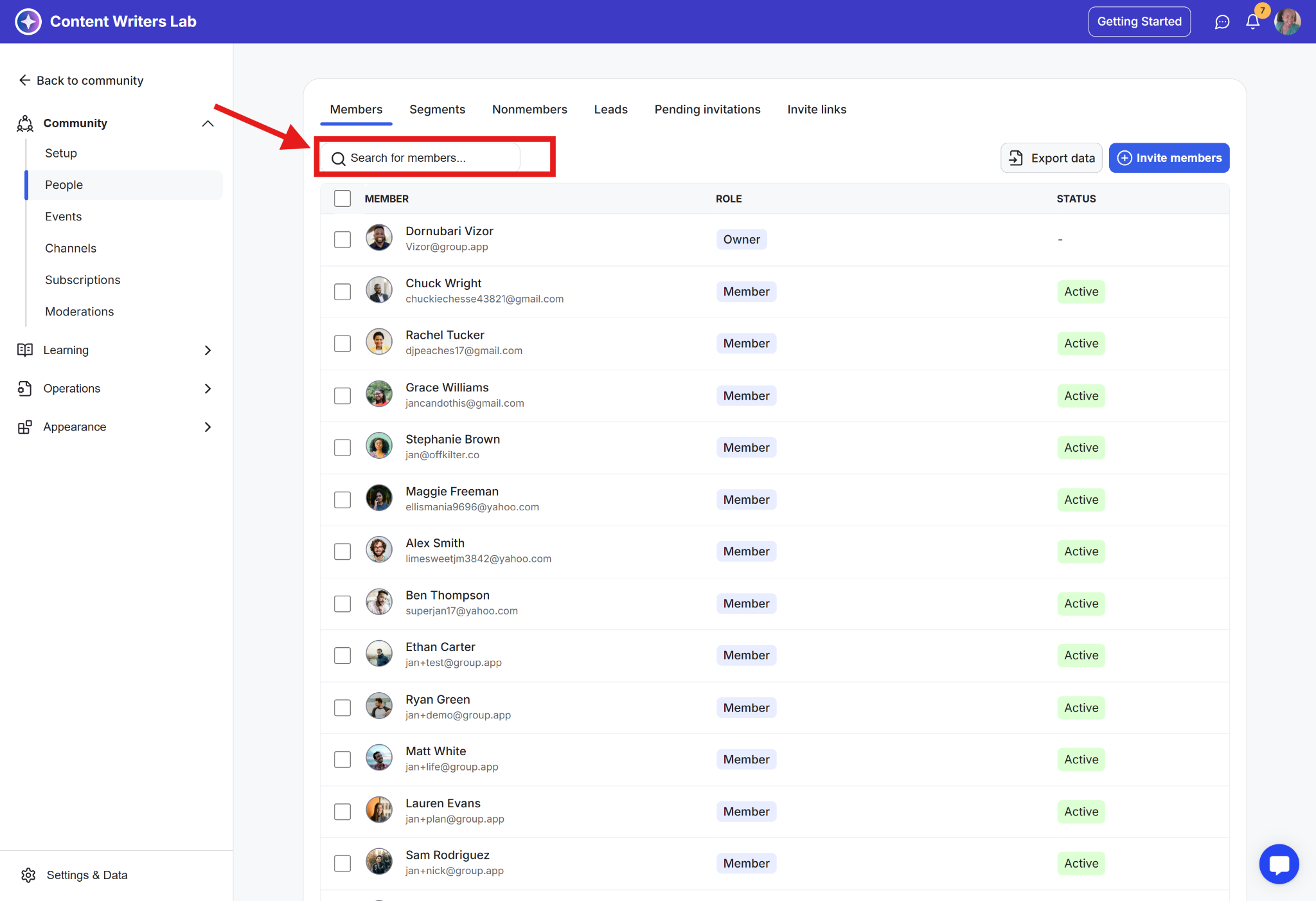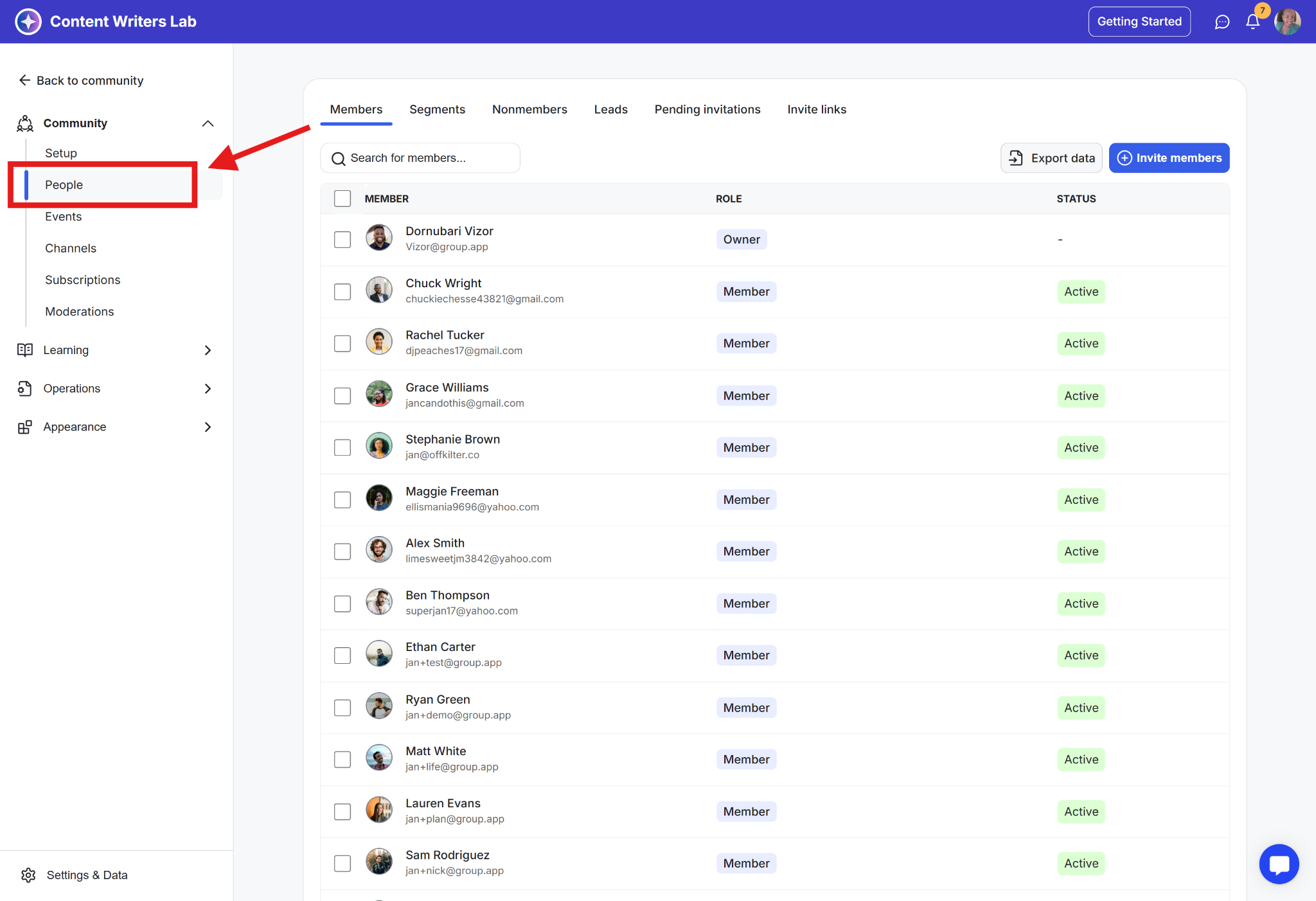 Step 1: Go to your Admin Panel and click People on the left-side bar. This opens your People Dashboard, and you’ll see the Members tab.
