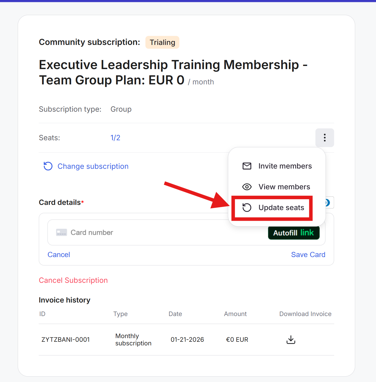 As an account owner, you can adjust the number of seats in your group subscription, either increasing or decreasing them.