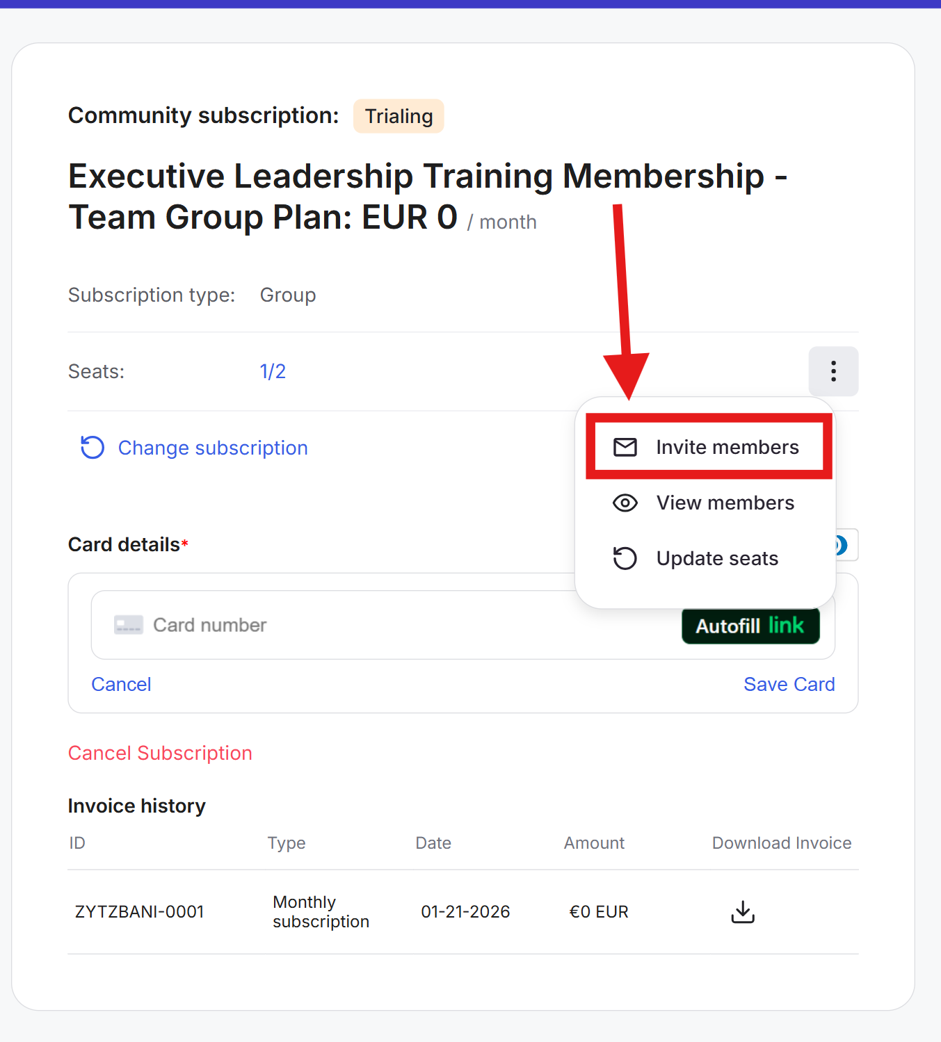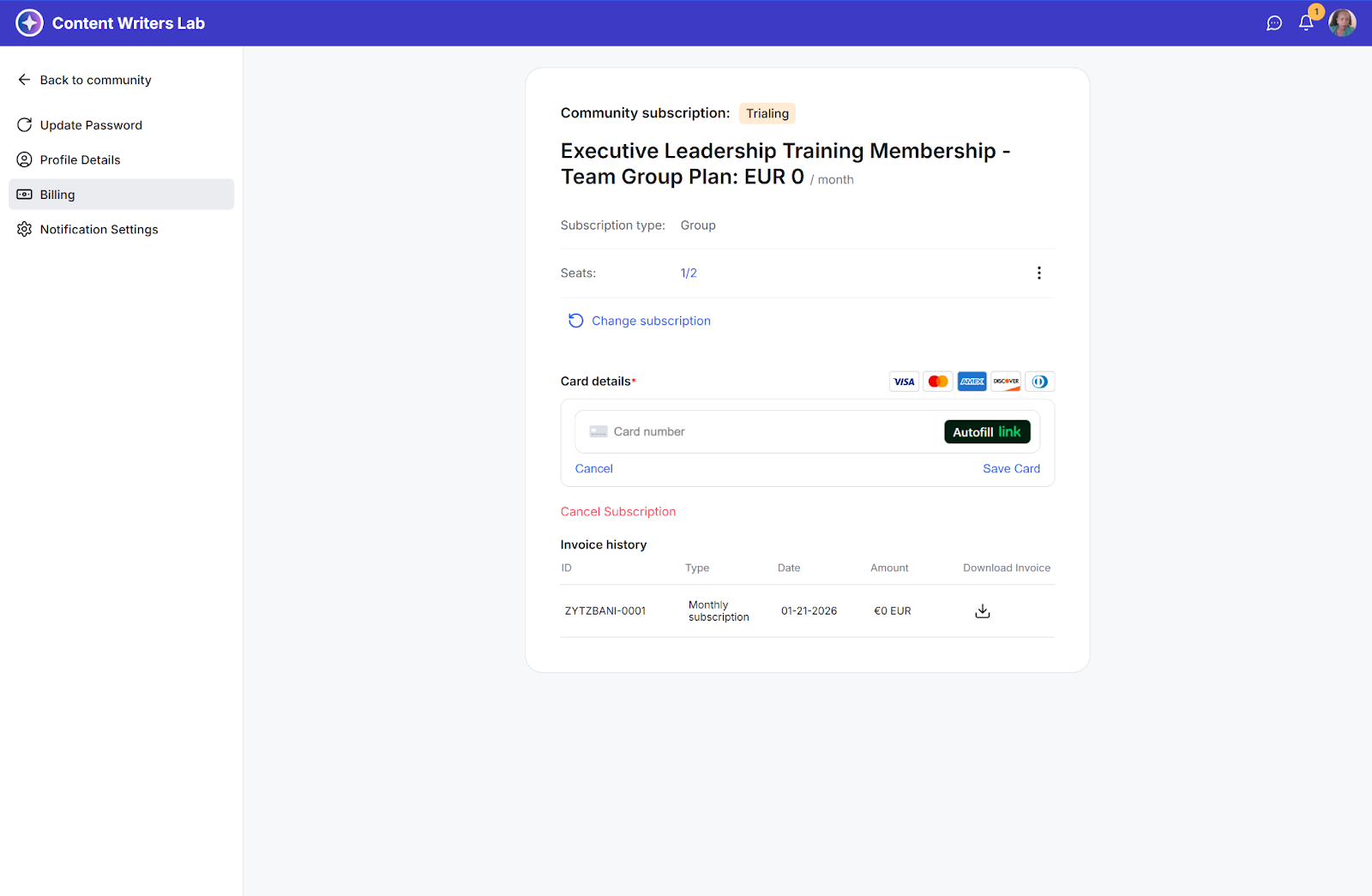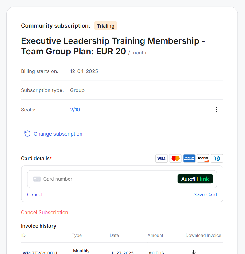Group Subscriptions allow a single buyer to purchase multiple seats under one subscription plan. The buyer can invite their team members, manage seats, and handle billing, while you retain full control over pricing, access levels, and onboarding rules.